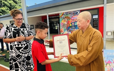 第15屆國際佛光緣小藝術家獎「感動最美.三好相隨」徵畫比賽,紐西蘭共有7名學生作品入選,展現兒童以藝術實踐三好精神的創意能量,2025年12月8、9日由北島佛光山法師頒贈獎狀和畫冊,鼓勵孩子透過藝術開發心靈,將三好落實在生活中。