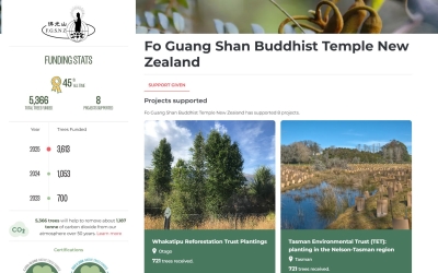 紐西蘭南北島佛光山響應國際佛光會世界總會推動的「全球復蔬公益路跑VEGRUN」活動,自2023年起聯合紐西蘭全國植樹的Trees That Count組織,響應政府提出的「十億棵樹 One Billion Trees Programme」原...