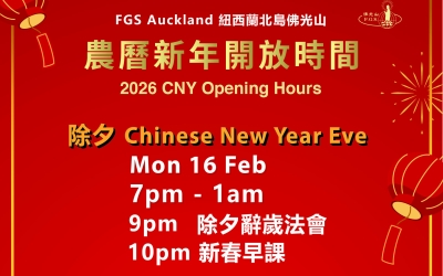 2026 紐西蘭北島佛光山農曆新年開放時間