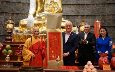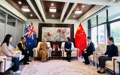 為慶祝中國新年的到來,國際佛光會紐西蘭南島協會於2026年2月11日前往中國駐紐西蘭基督城總領館拜訪總領事何穎女士。此行有紐西蘭佛光山住持滿信法師、中國西北大學謝志斌副教授、翟欣钰博士生、南島協會劉盎齊會長及秘書蘇妍等。