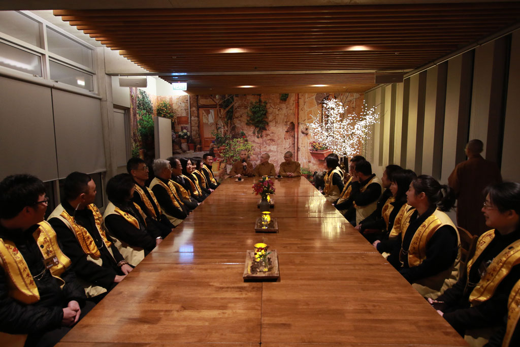 佛光山人間佛教研究院院長妙凡法師、知悦法師於7月1日至紐西蘭南島佛光山參訪,當晚與南島協會幹部座談,了解當地弘法模式與方向,同時也與協會幹部分享大師的故事與智慧。紐西蘭佛光山住持滿信法師、南島佛光山監寺覺西法師、國際佛光會紐西蘭南島協會會長蕭文輝、副會長陳立勝及幹部共30人出席。