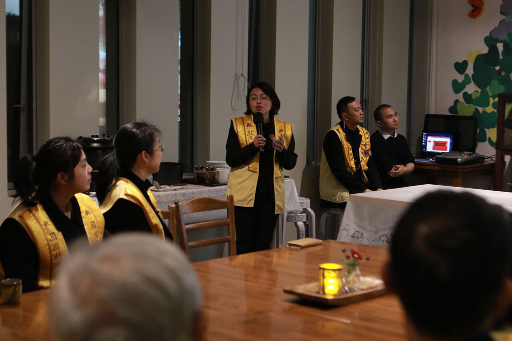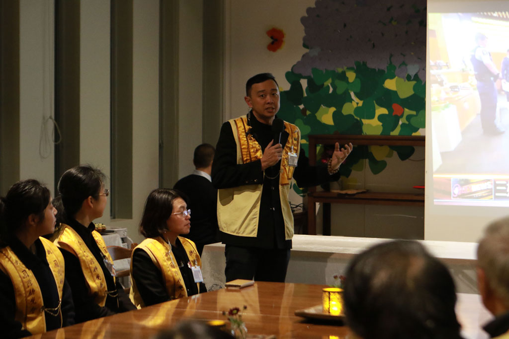 協會理事劉國威以《366 Days with Wisdom 》送書影片,分享送書期間與店家的互動及迴響,他表示總共拜訪了1300多家旅館及飯店,有800多家接受贈書,累積超過2萬本。陳立勝副會長以「2019年南島佛光山三好四給文化節」影片說明佛光人在活動中宣揚星雲大師三好四給的理念,紐西蘭警察也協助此活動。幹部曾俊美分享當地藝術家在二館的展出成果大眾的迴響,並表示美術館是一個藝術交流的平台與空間,讓中西方文化在此融合。協會理事曹倩分享咖啡巧克力嘉年華及國際素食日素食品嚐會的活動盛況,活動邀請本地廠商前來擺設攤位,咖啡藝術家前來作畫、精彩的節目表演等。總售票超過1600張,當天出席人數超過1300人,創下紐西蘭本土化弘法的新模式,同時也在這兩個活動中讓更多的基督城大眾對素食有新的認識。