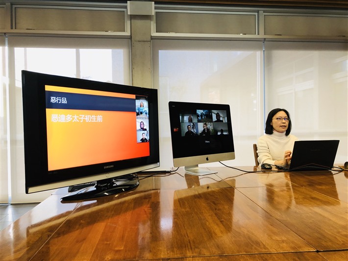 紐西蘭南島佛光山5月15日佛學課程,由國際佛光會南島協會理事陳惠君分享《法句譬喻經》裡的幾則故事。監寺覺西法師、國際佛光會南島協會理事曹倩、劉國威等,及線上的南島佛光人共11人參與。