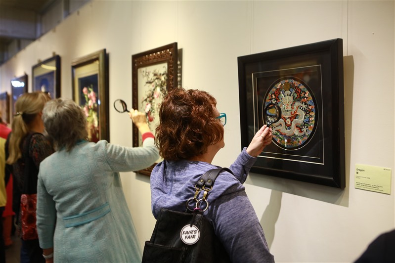 館長為大眾介紹展覽作品「貴妃醉酒」及「五龍」。「貴妃醉酒」採用的是畫家劉令華畫的一系列京劇中的人物,採用的針法是亂針繡和細平繡相結合,用各種豐富的顏色,把人物的動態與表情都呈現出來。龍是中國文化和文明的象徵,而五爪龍的像徽在中國相當普遍,特別是在明清藝術中,經常被雕刻在門、繡在長袍,或畫在陶瓷作品上。