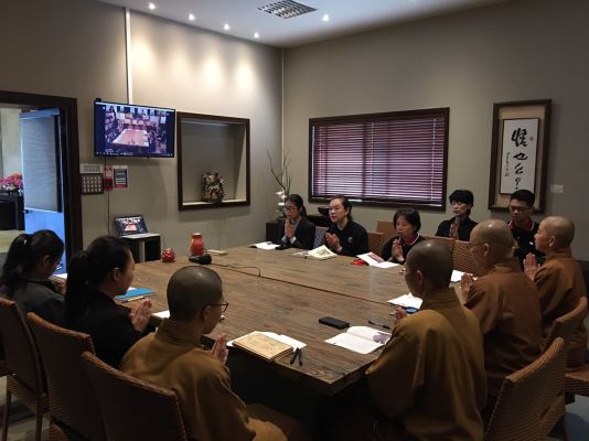與會大眾紛紛分享自己在職場及道場的經驗與體悟,住持勉勵大眾,求職要先求有,再求理想,要有勤勞負責的態度,積極服務大眾的性格,和不怕吃苦的精神,才能實現自己的理想,發揮生命的價值。