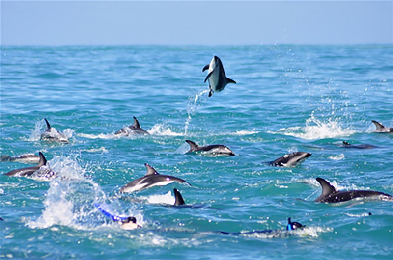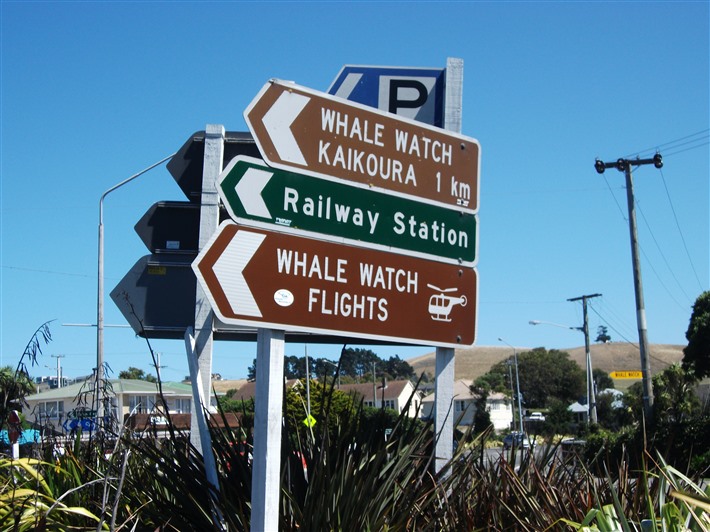 探尋紐西蘭寒帶野生動物的蹤跡,可從南島北部的 Kaikoura開始。Kaikoura位處亞熱帶和亞南極洲交匯處,水溫較低,是鯨魚的安全避風港,特別是抹香鯨和藍鯨的活躍地帶。海豚也會在這海域出沒,特別喜愛與人類共泳。Kaikoura以賞鯨和追逐海豚活動為名,鎮上就有路標標示去向。此外,Kaikoura也是海獅和海豹的棲息地,開車在海岸線大道上就可以看到一隻隻小海豹懶洋洋地趴在岩石上曬日光浴,往往令趕路人禁不住停下車來眺望!