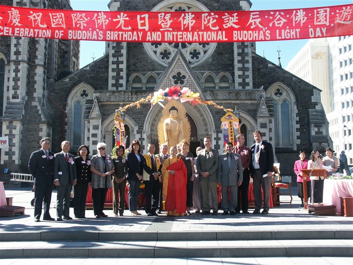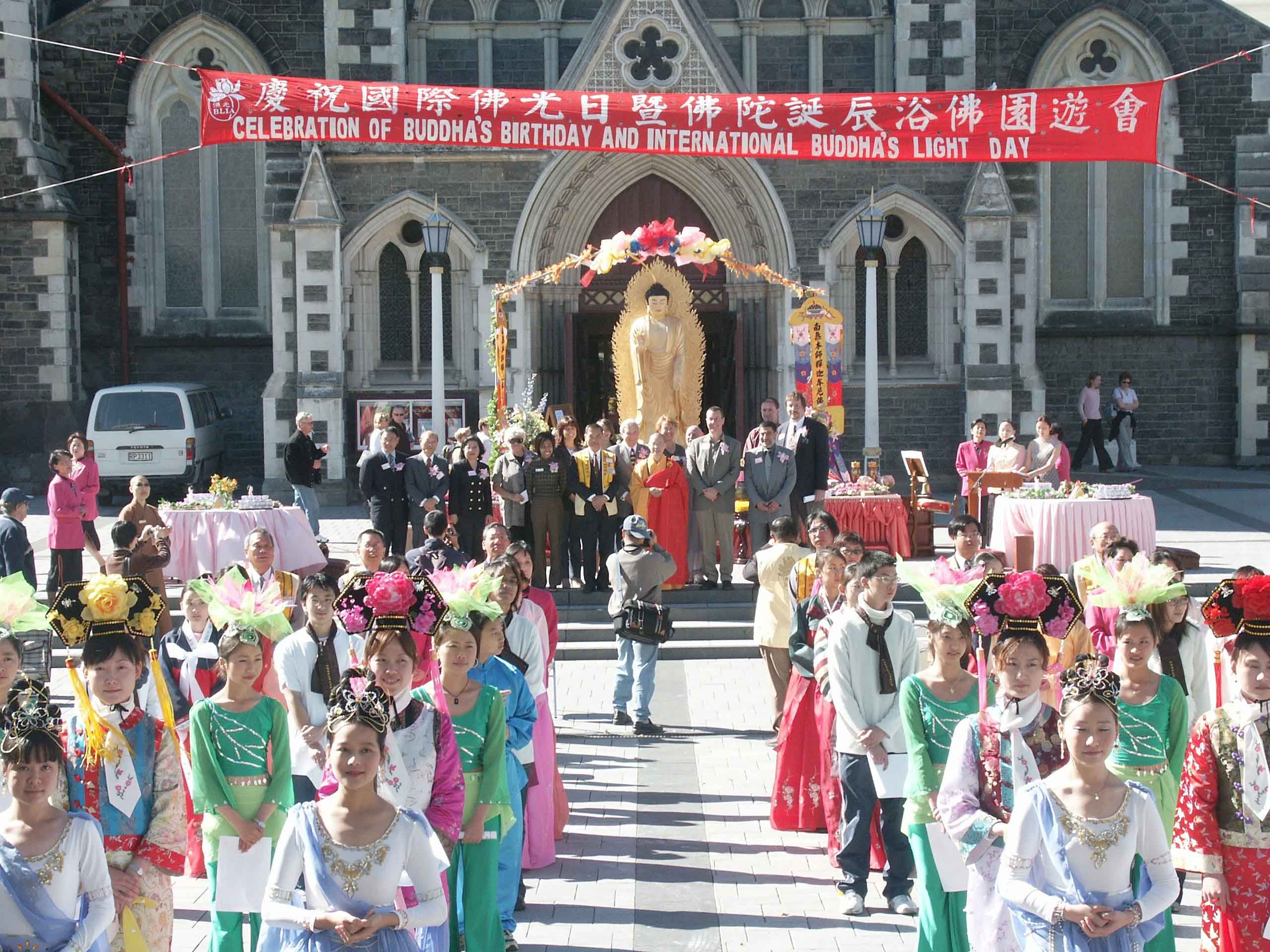 南島佛光山與基督城大教堂英國國教有很深的因緣,從2001至2009年浴佛節活動都在大教堂前廣場舉行,歷屆主教都親臨現場參與盛會,也吸引了許多不同國籍人士參與,讓許多人因而認識佛教及深入佛法,也參與佛光會活動。近年來南島佛光山浴佛節活動在道場內舉行,大教堂主教幾乎每年都會出席。