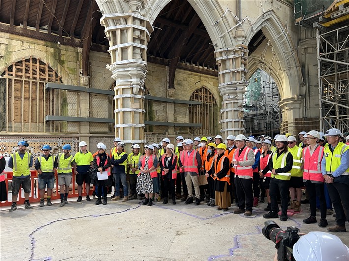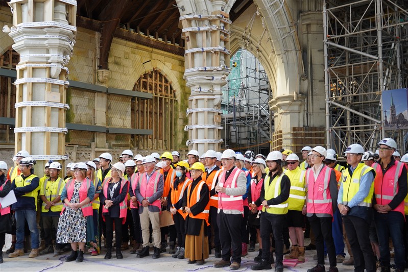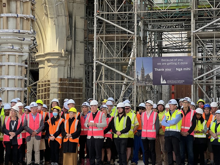 經歷2011年地震重創坍塌的紐西蘭基督城標志性建築—百年大教堂(Christ Church Cathedral),歷時12年從廢墟、商議重建到修復的冗長過程,終於完成第一階段的施工。基督城大教堂於3月21日邀請50位社會賢達前來重建中的大教堂,一同見證第一階段的工程進度,慶祝這歷史性的一刻。由基督城英國國教大主教Very Reverend Lawrence Kimberley帶領巡視工程。