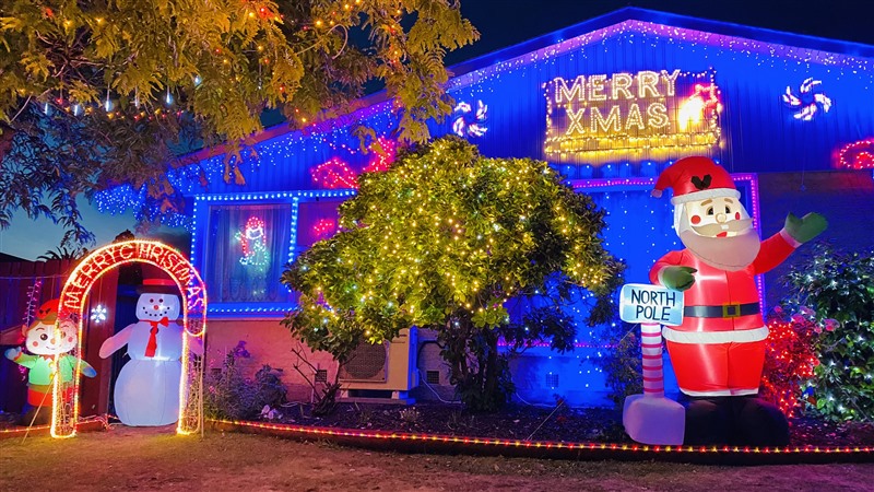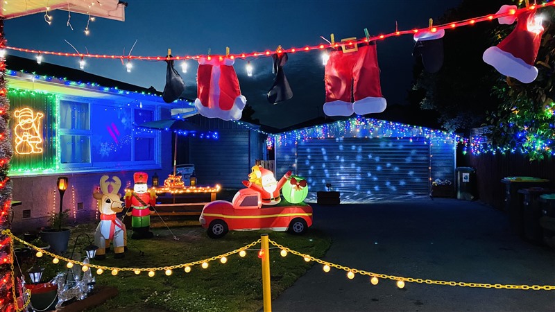 臨近Prebbleton的 Hornby社區,有一戶家庭Luke Murphy 與 Leia Austin,把自家庭院設計成耶誕遊樂園,五光十色及充滿動感的燈泡,令見者感到心花怒放,小孩穿梭在童話屋裡更是自得其樂。Luke把耶誕佈置訊息廣發文宣,每天吸引許多大眾參訪,縱使下著雨依然不滅大眾的好奇心趨前欣賞。Luke毗鄰的另一戶人家,也把自家庭院張燈結彩成耶誕佈置,把聖誕老人及相關裝飾設計得逗趣可愛,創意點子可媲美Luke。