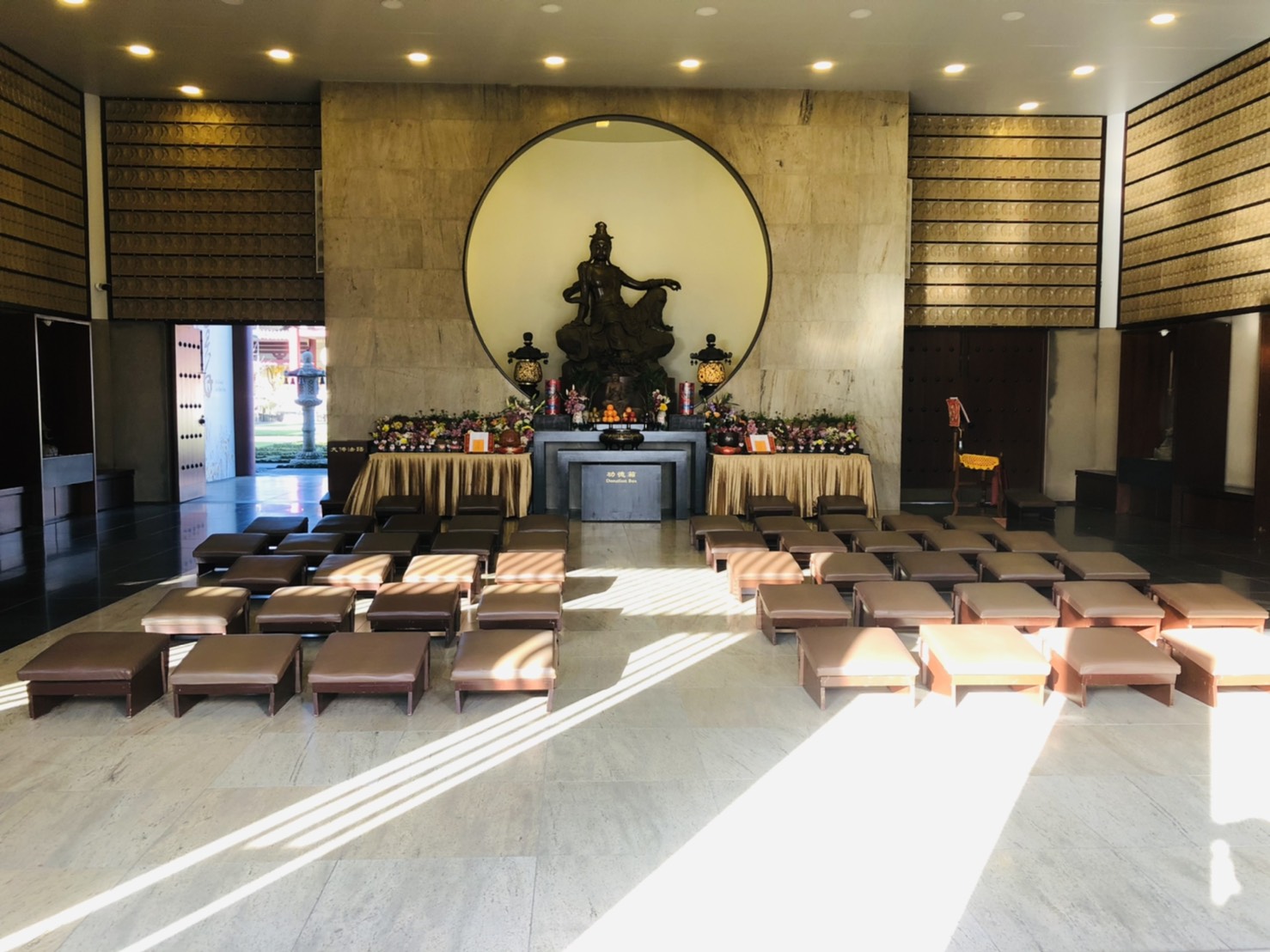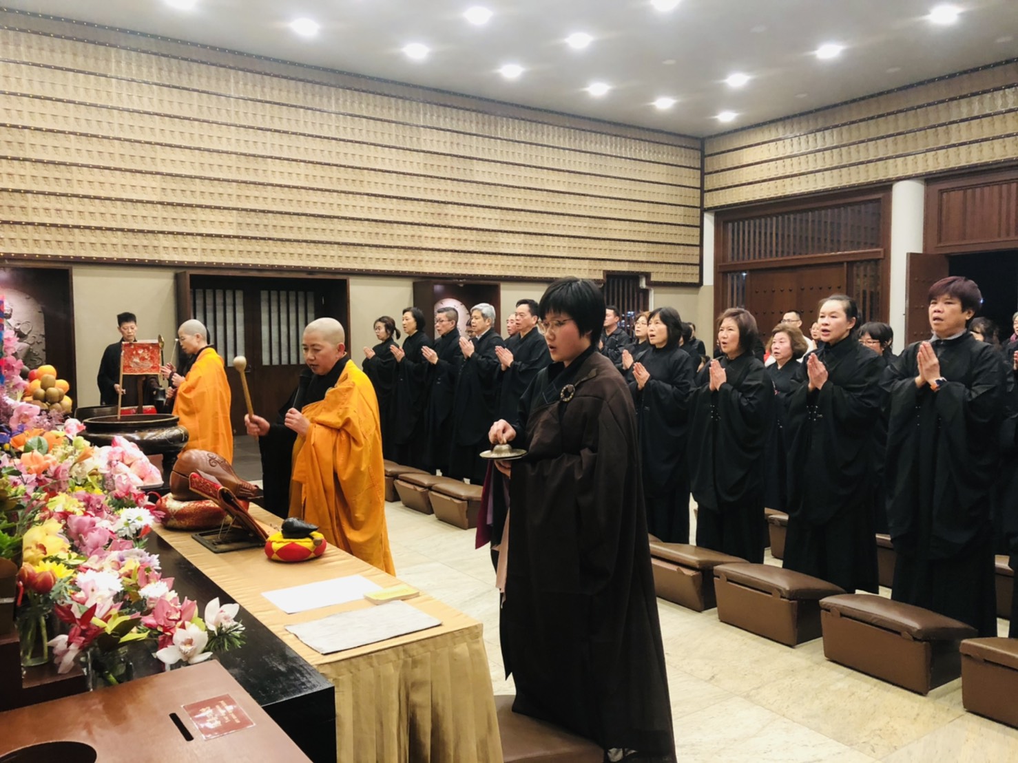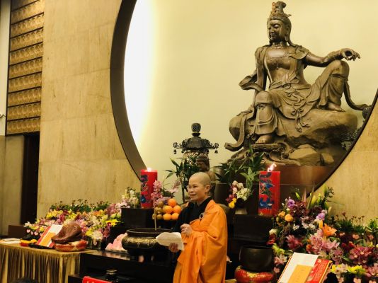 為紀念觀世音菩薩成道紀念日,紐西蘭北島佛光山7月28日(農曆6月19日)舉辦朝山修持活動。於下午有來自奧克蘭大學佛光社團的2位佛光青年及金剛義工自願發心協助殿堂的拜墊、桌子等布置,青年Manisha表示要以最好的服務提供給晚上前來朝山的大眾一個舒適的環境。