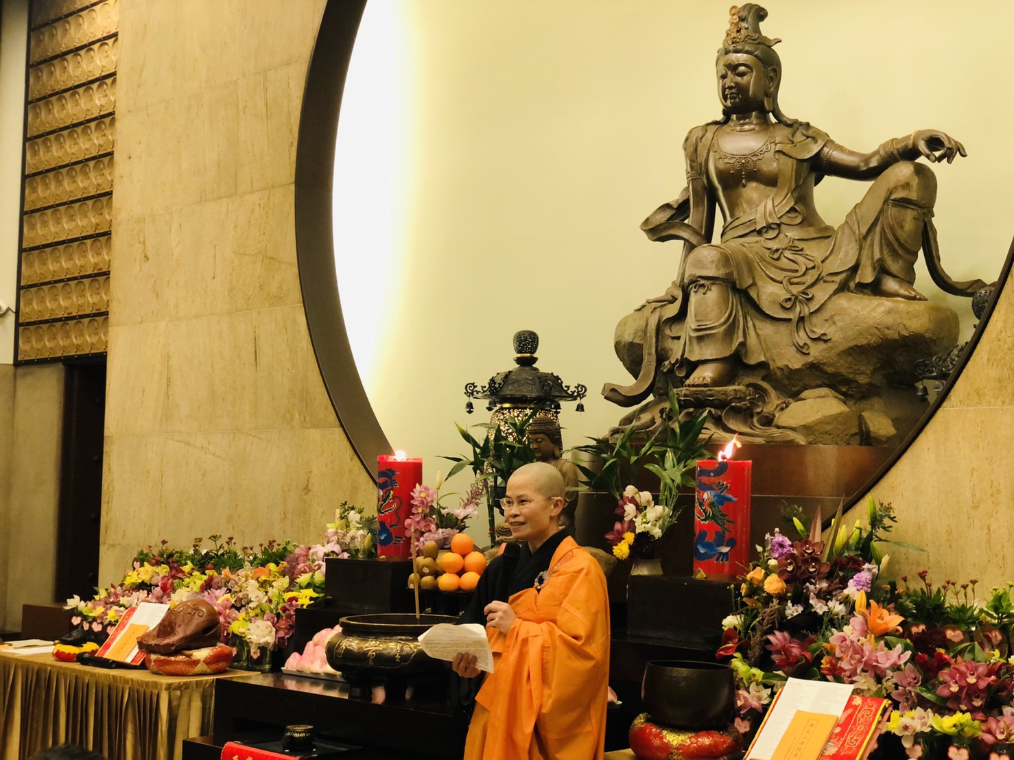 如廉法師為大眾開示觀音十大願的修學內容,並以佛陀紀念館「陀洛伽山觀音殿」的千手觀音安座的靈感事蹟,講說修學觀音法門是需要與慈悲相應,因為慈悲能淨化心靈,慈悲更是沒有敵人、沒有對立。大眾從菩薩所發的「願我速知一切法乃至願我早同法性身」之十大願當中,學習到每一個大願皆從自我的覺悟到契入上求下化的菩提心,也是觀世音菩薩為了給予眾生一些好因好緣所立下的廣大、深遠之弘願。最後勉勵大家都要成為觀世音菩薩,將菩薩的慈悲、智慧與方便落實生活。