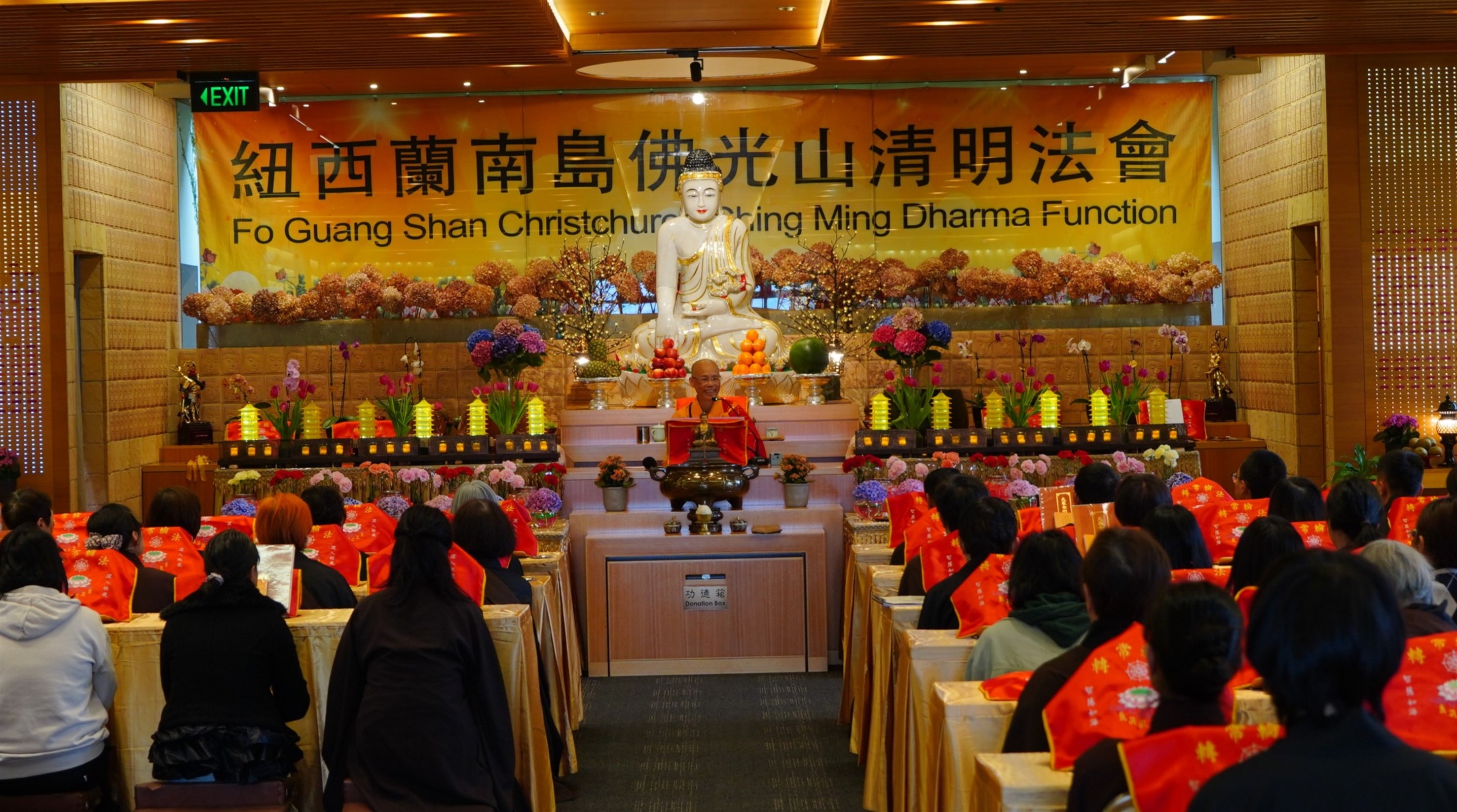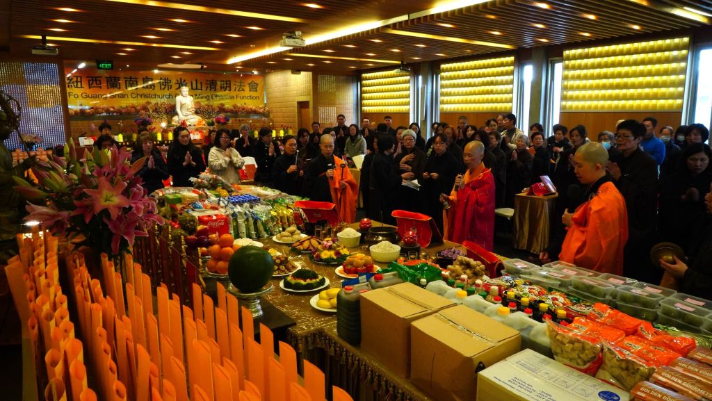 紐西蘭南島佛光山於2024年4月6日啟建年度「清明法會」,由紐西蘭佛光山住持滿信法師與常住法師帶領80餘位信眾虔誠諷誦「金剛般若寶懺」,為眾姓護法信徒禮懺,祈願大眾福慧增長,闔家安康。