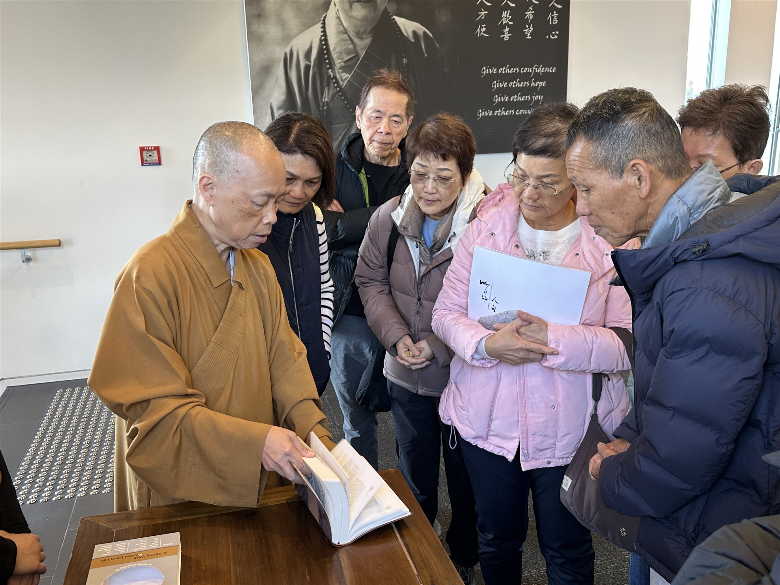 住持也分享紐西蘭佛光人在地推動星雲大師《366 Days With Wisdom》送書予旅館活動,並感謝馬佛光文化的特別印刷。大眾至如來殿獻燈祈福後在美術館欣賞「The Summer Forest」藝術聯展,一行人讚歎美術館環境優美,本土藝術家的創作也令人敬佩。住持代表常住贈送弘法報告及南北島道場建築設計為主題的《人間》書籍為紀念。