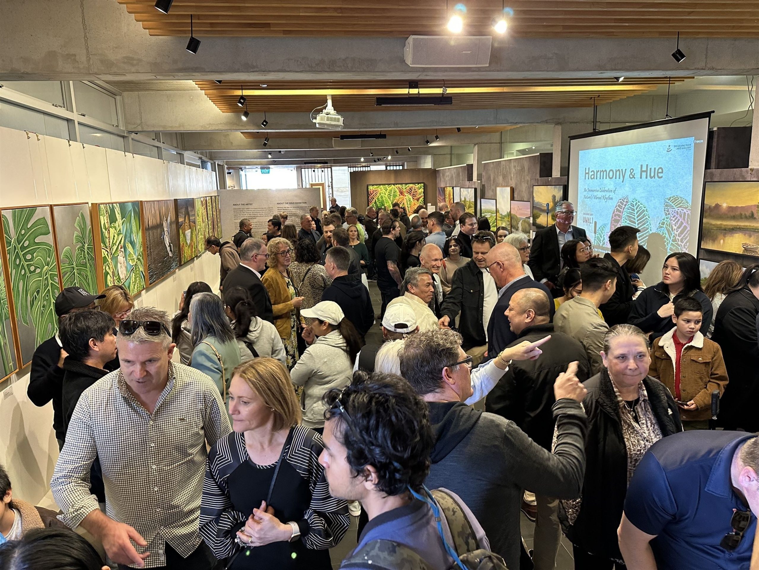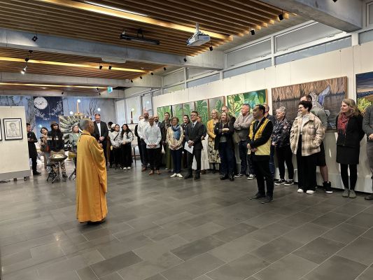 佛光緣美術館紐西蘭二館於5月31日舉行「Harmony & Hue油畫展」開幕式,出席貴賓包括館長滿信法師、紐西蘭航空引擎部總經理Graham Jack、佛光緣之友主席Gayel Marquet、銅絲藝術家Leonore Ashby及佛光緣之友近250人共襄盛舉。