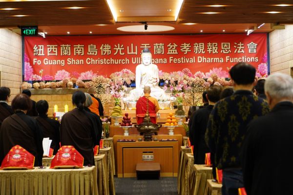 紐西蘭南島佛光山於2025年8月9日舉行「盂蘭盆孝親報恩地藏法會」,恭請紐西蘭佛光山住持滿信法師主法,帶領大眾諷誦《地藏菩薩本願經》。60位信眾虔誠誦經迴向歷代祖先及十方法界一切眾生,並祈願諸事圓滿闔家安康。