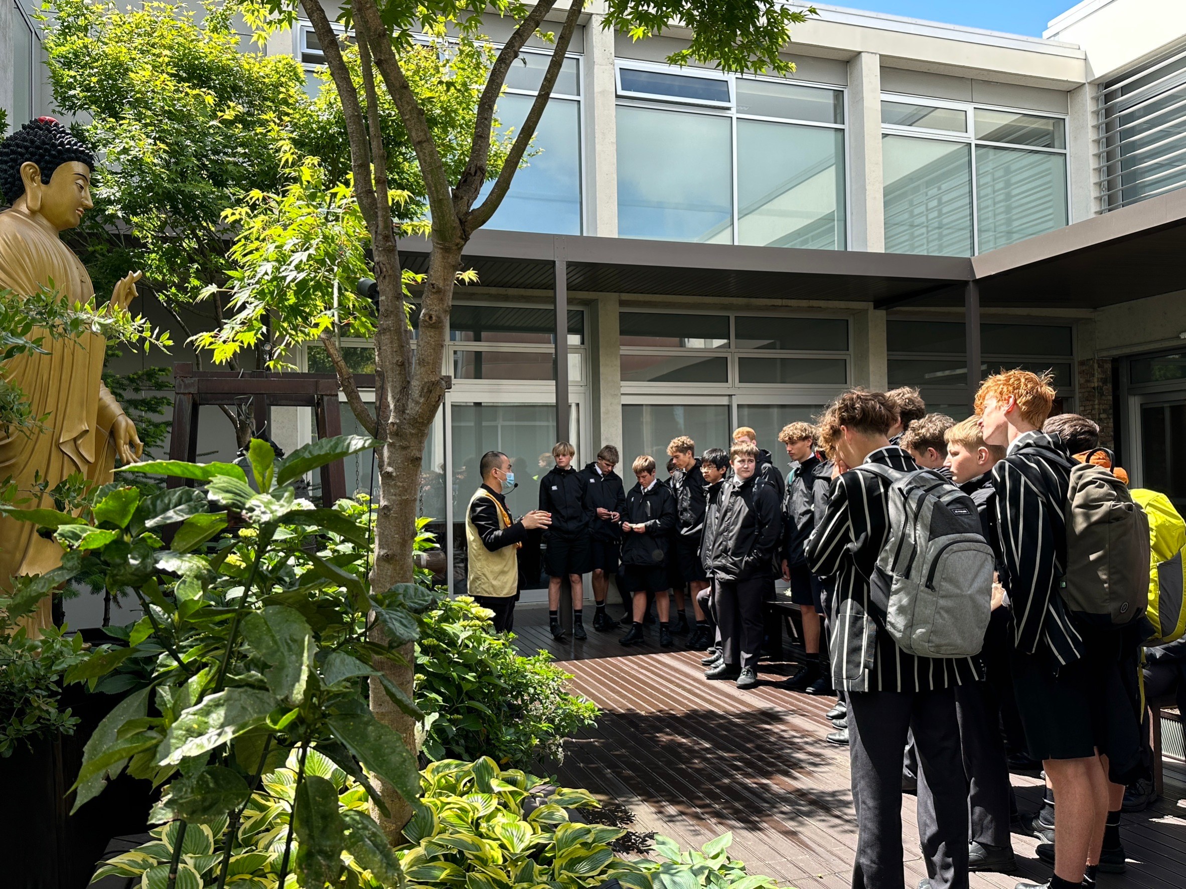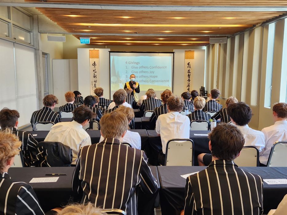Christ’s College為紐西蘭歷史最悠久的私立男子中學,源自英國國教的教會學校。領隊Cameron Pickering 牧師與道場多年來保持友好關係,並多次安排學生前來體驗人間佛教的歡喜。他感謝道場提供寧靜的學習空間,開拓學生們的視野並學習成為對社會有用的人。
