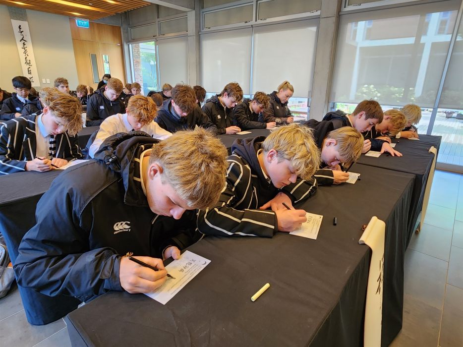 國際佛光會紐西蘭南島協會劉國威理事首先帶領師生寺院巡禮並介紹道場建築的四大菩薩外觀設計、導覽美術館及如來殿,學生們樂見中庭百花齊放的景象,興奮許願敲嚮幸福鐘。能常法師分享大師寫一筆字的因緣,引導師生們透過一筆一劃靜心書寫毛筆字,體驗回到當下的美好。接著師生們觀賞《佛陀的一生》影片,學習三好四給價值觀。劉國威理事也以深入淺出的方式講解佛教的因緣觀,以一顆種子的生長為例,需要陽光雨水的灌溉而成長,並帶出此行參訪也是匯集了眾多因緣而成就,學生們無不有所啟發。