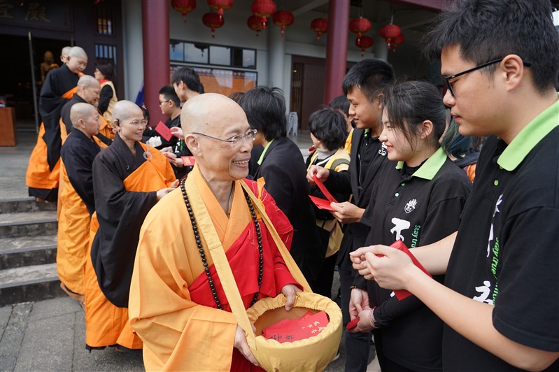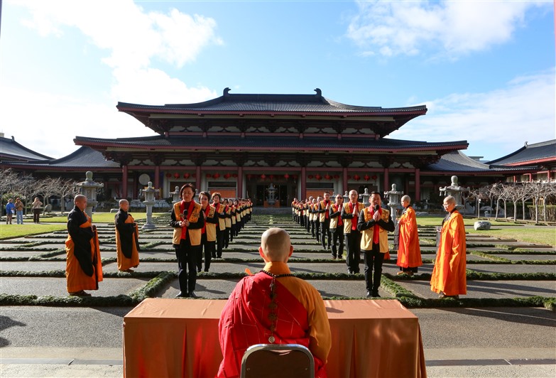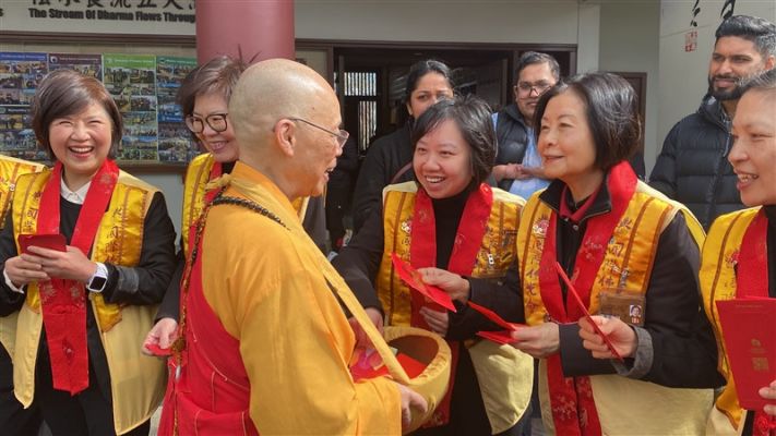 南島協會蕭文輝會長感謝法師們不惜長年累月,無私無我的為紐西蘭大衆弘法利生,「身為佛光人是很幸福的,因為有大師的理念,引領我們靜心道業。有住持滿信法師及諸位法師帶領,將人間佛教深耕在紐西蘭。大眾唯有珍惜和感恩 ,發大願心,保護佛教」。莊嚴的托缽儀式在成佛大道舉行,佛光人以恭敬的心感謝佛光山給與大家培植福德與供養僧寶的機會,為自己和家人種下生命的福田和資糧。