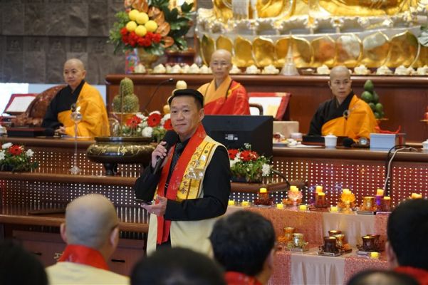 滿信住持感謝偉大的大師為大眾留下無數的慈悲與智慧,尤其「讓人間佛教的信仰在紐西蘭的土地生長與發揚,把佛教、常住、大眾、事業擺在第一位,更是大家共同的目標。」並講解大師開示我們「信仰要實在的、信仰有道德的、信仰大能的、信仰人本的」。住持並代表常住感謝護法大眾的護持,讓我們集體創作,共同為佛教走入紐西蘭的社會而努力。