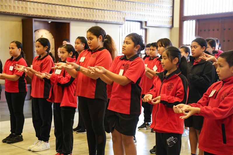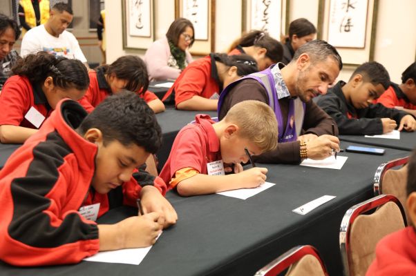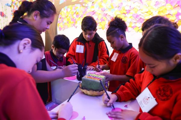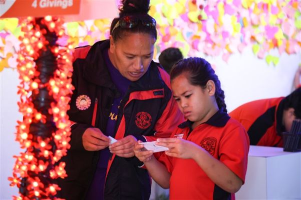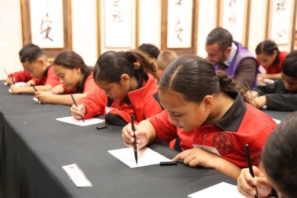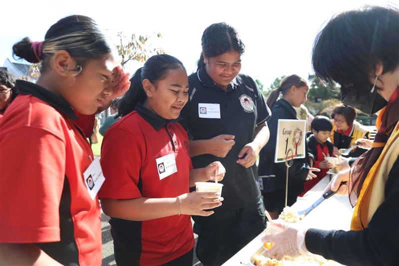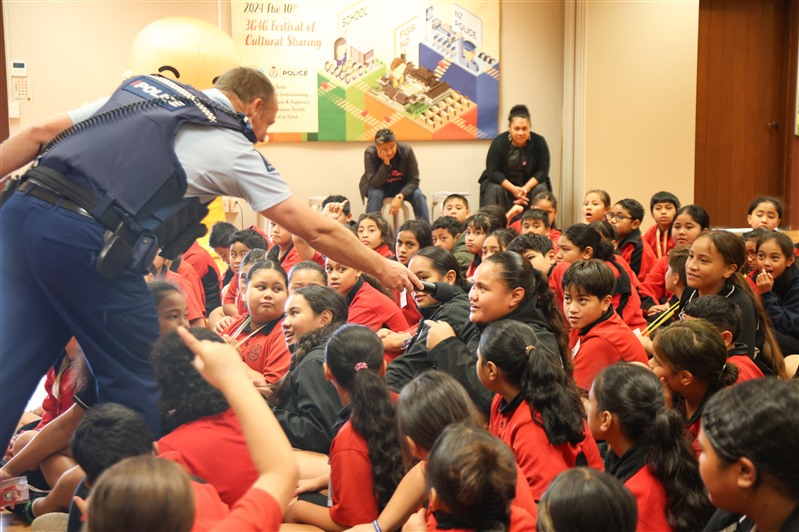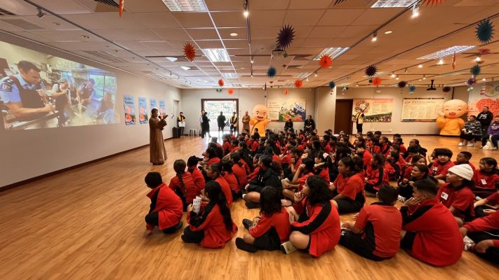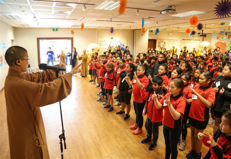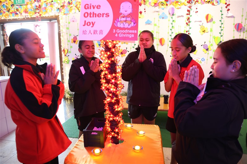 紐西蘭北島佛光山「第十屆三好四給人間佛教文化節」於5月15日迎來第17、18場活動,奧克蘭東區Flat Bush Primary School 的270位師生在校長 Mr Banapa Avatea帶領下前來參加。 紐西蘭國會議員Nancy LU、全國最大警區馬努考區新任行政首長Superintendent Shanan Gray警司、道場所在Ormiston區副局長Inspector Rakana Cook督察也前來關心文化節活動。住持滿信法師、北島協會顧榆齢會長引領下,參觀學生書寫毛筆字、禪坐靜心等活動,貴賓們亦歡喜加入常住法師炒飯行列,為當日學生提供可口的【三好飯】,共同見證「三好四給」理念在社區中的積極影響。