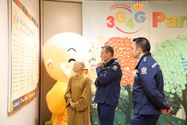 Gray警司表示道場為前來參加活動的學生免費提供餐食難能可貴,一份份熱騰騰的炒飯讓學生得到照顧,也【給】出善美的因緣, 讚歎佛光山無私的服務大眾,配合學校關心學生的身心健康。Nancy LU議員表示,與學生們一起學習「3G4G」歌曲時,看到他們臉上洋溢的純真笑容,是令人心生喜悅的體驗。感謝十年來,佛光山與警署部共同對社區和年輕一代的堅定奉獻, 教導他們在家中和學校的良好行為,攜手並肩,繼續傳播善良和積極的能量。