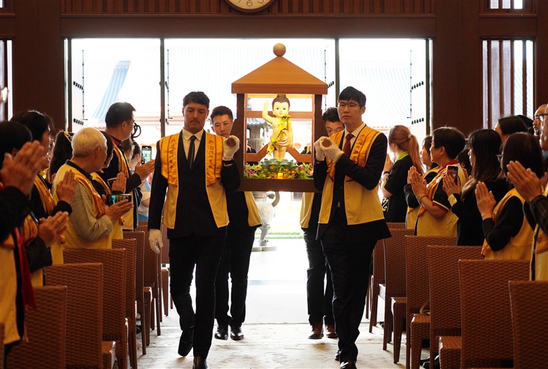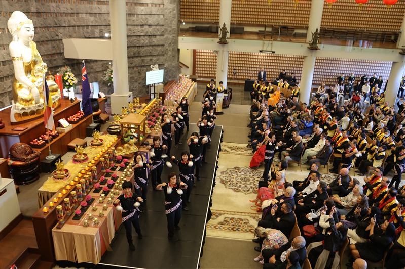 典禮中,常住備辦諸供品向佛陀獻供、佛光青年以醒獅表演迎請太子聖像、蘇格蘭管弦樂團奏樂恭迎佛教教旗及國旗、北島佛光山人間音緣歌詠隊和兒童佛學班帶來舞蹈表演〈Poi E〉和〈敦煌舞蹈〉,常特別準備大蘋果與眾結緣,祝願大眾一切平安。佛誕節現場還有佛光寶寶祈福典禮、古董車展、本土市集、星雲大師一筆字展及書展、茶禪一味等活動,兩天的浴佛節慶典將近2000人前來道場共襄盛舉。
