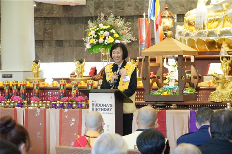 顧榆齡會長感謝住持與常住法師慈悲帶領,實踐大師「給」的精神,透過文化、教育與慈善活動弘揚人間佛教,2024年藝術沙龍共展出超過1200件本土藝術作品、農曆新年發送1萬2千個吉祥紅包,透過「集體創作」取得紮實成果,並分享5月即將登場的「第十一屆三好四給人間佛教文化節」,共有62所本地學校師生熱情參與。