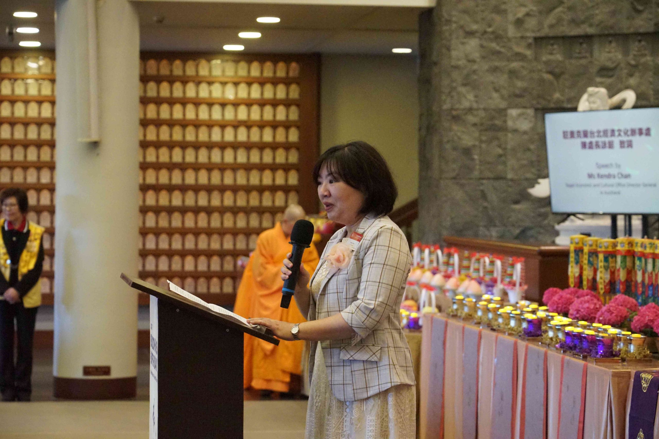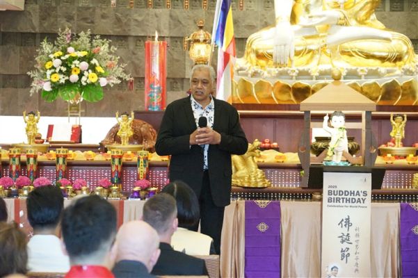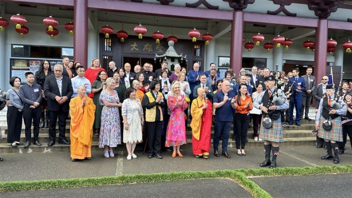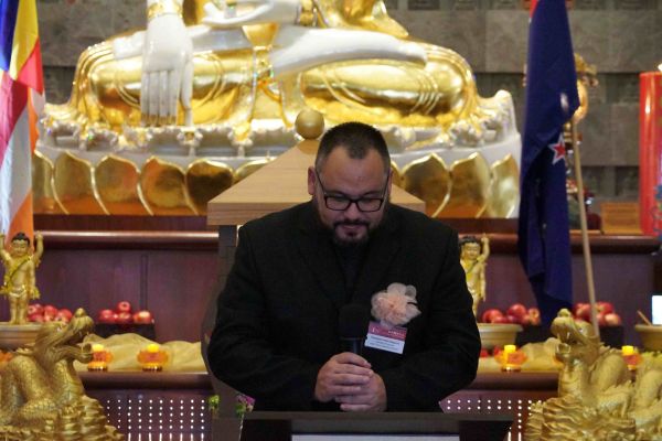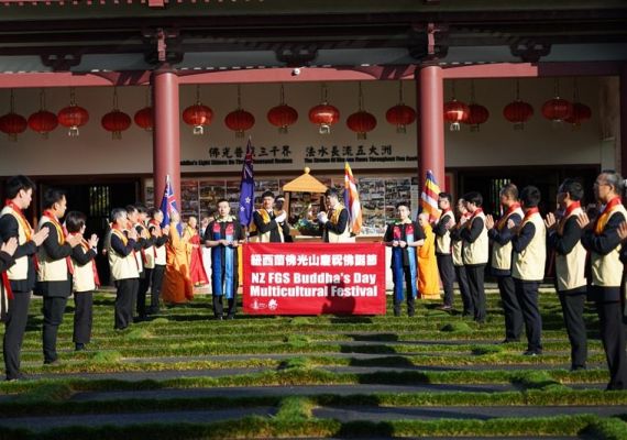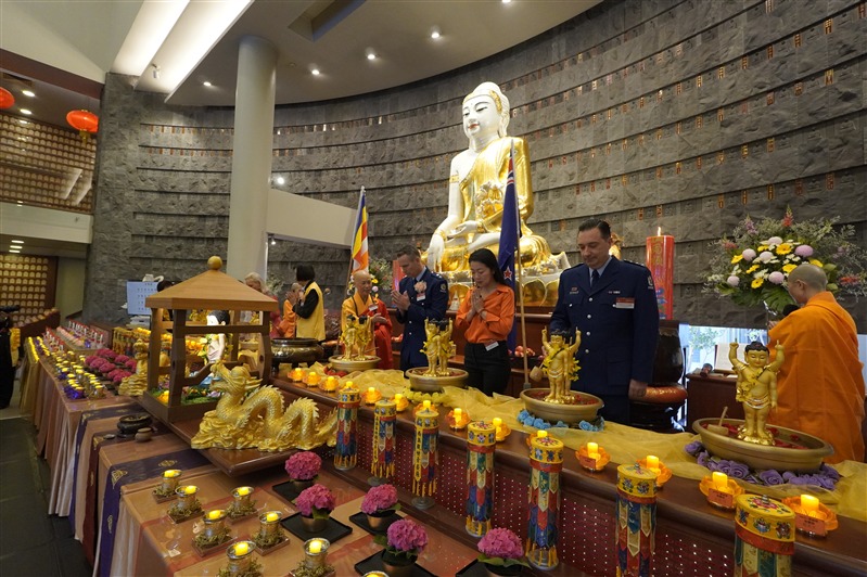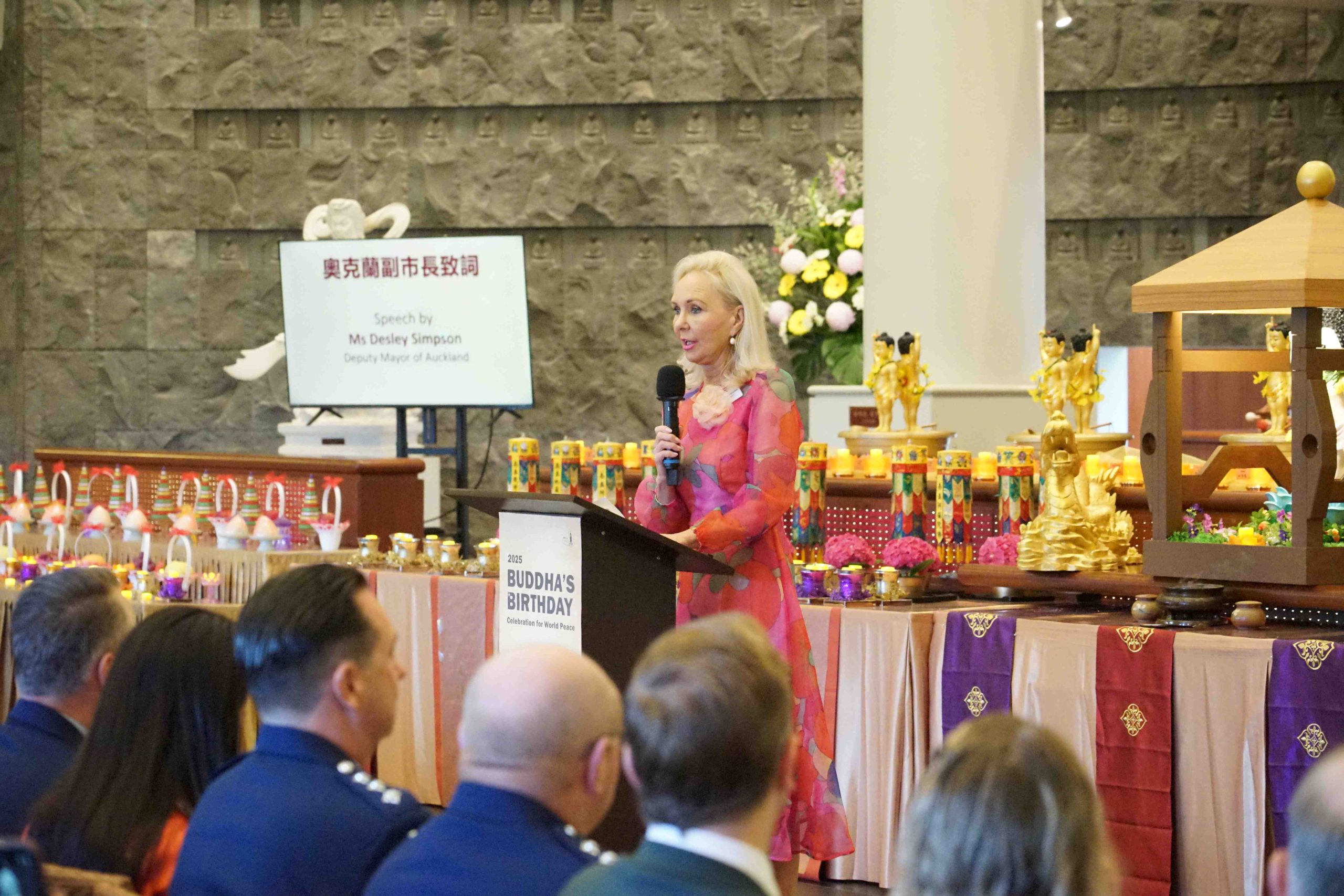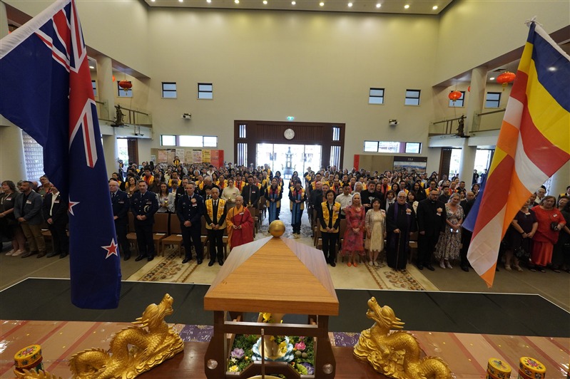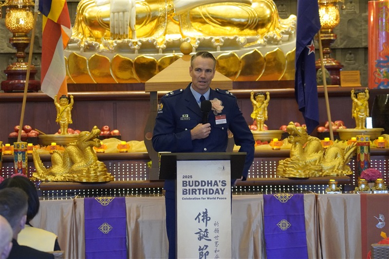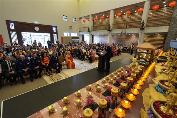 副市長Desley Simpson、陳詠韶處長、Supt Shanan Gray警監致詞感謝佛光山道場為社區所做的積極貢獻。副市長指出,「佛陀的教導勉勵我們攜手建設理解、善良、團結的社會,感謝佛光山以信仰為基礎,搭建青年活動與義工服務的平台,為城市注入善與希望」。陳處長提出「大師的慈悲與智慧,弘揚佛教於全世界,住持和常住大眾將人間佛教扎根紐西蘭,啟發心靈的力量,參與者皆感覺無比幸福」。「道場是警方與多元族群社區之間不可或缺的橋樑,實踐三好──做好事、說好話、存好心,讓社會更加和諧與美好」,Supt S Gray警監強調。