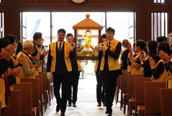 住持滿信法師致詞提出世界和平的基礎之一,是讓人民擁有富足安穩的生活。感謝總理這兩年來不辭辛勞奔走於國際,只為爭取更多的發展,帶領國家邁向富裕與安定。住持指出,「依佛教的觀點,有六種方法可以增加財富──勤勞、節儉、寬厚、信心、結緣與布施。但最重要、最寶貴的財富是在人人心中的『般若』智慧,大眾有了『般若』,就等於有了光明,就擁有無盡的財富寶藏」,祝福與會大眾生活充滿「般若智慧」,生命就因此富貴歡喜。