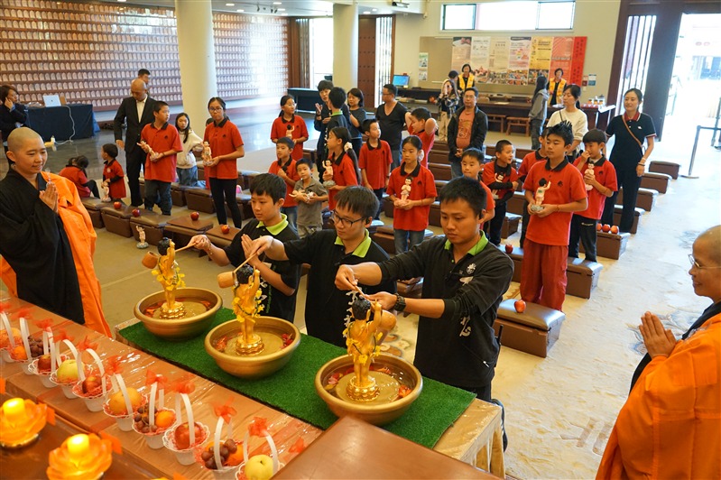 兒童佛學班的學員從家中帶來了小太子聖像,在大雄寶殿內浴佛。住持滿信法師表示太子聖像供奉在家中為了時刻提醒小朋友要經常心存恭敬,培养自己虔诚的心,更要時刻銘記自己是佛陀的學生,將這份信仰傳承下去。學員Alice歡喜表示,感謝自己有機會在道場與其他的學員共同學習並養成良好習慣,,真是收穫滿滿。學員Wish表示,供養太子聖像培養了自己的恭敬心。學員Raymond HU感恩法師們的指導和關愛,讓自己成長的更踏實更堅定。
