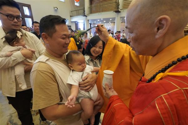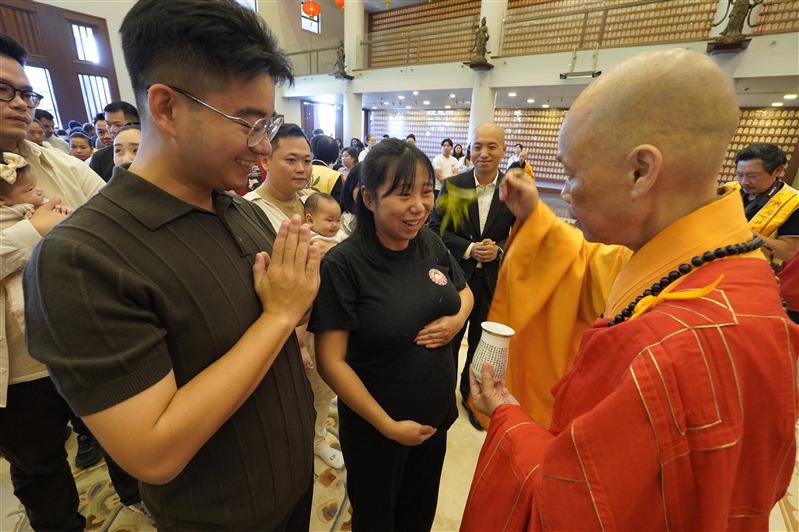佛光寶寶及兒童祝福禮於上午11點在大雄寶殿舉行,恭請紐西蘭佛光山住持滿信法師主法,諷誦《般若波羅密多心經》及恭讀佛光山開山祖師星雲大師〈為新生兒祈願文〉,並為118多位來自紐西蘭、中國、印度、馬來西亞等國家和地區的兒童祈福灑凈,祝福每位孩童在佛菩薩的護佑下健康成長、福慧圓滿,擁有光明美好的未來。
