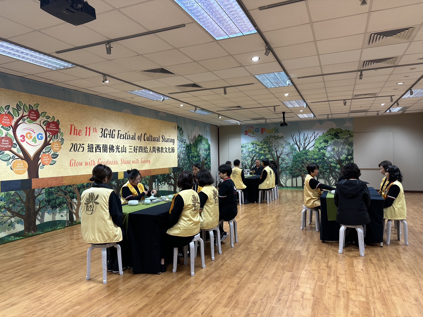 北島協會顧榆齡會長指出今年的3G4G人間佛教文化節裡,為期五週的教育活動中有四千多位學生參加,動員了社會各界領袖共同參與,共同為社會注入了善美因緣。分會督導韓玉花歡喜分享她在觀音殿服務,來寺的大眾聽了她講解供養香的意義與儀軌而歡喜。分會督導鄭玉璽體會茶球舒展為茶葉的過程,讓她深刻體會生命的成長歷程,細胞在母體內受到滋養而茁壯,就如同茶球在熱水中經過浸泡累積而綻放,感恩人生路上的一切善因緣。