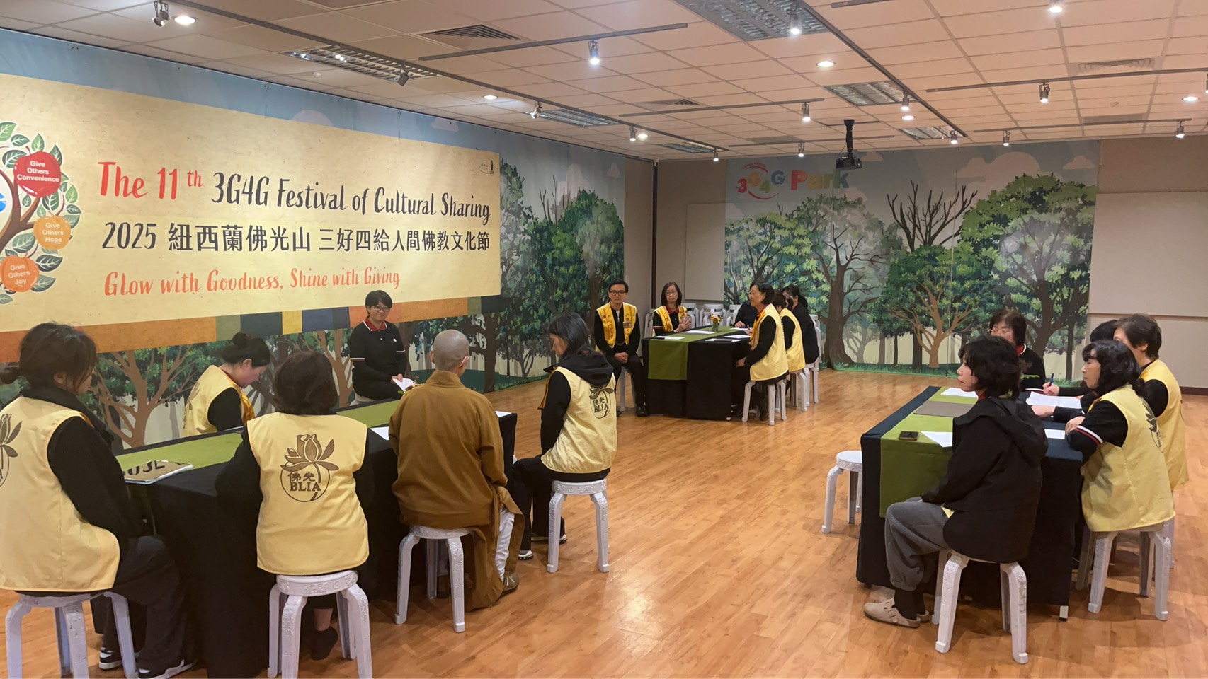 纽西蘭北島佛光山於2025年5月31日舉辦「端午茶禪讀書會」,禮請監寺如廉法師蒞臨指導,國際佛光會紐西蘭北島協會顧榆齡會長帶領茶禪行者及17位會員共學星雲大師文集《金玉滿堂 · 佛光菜根譚》中的文章「散播快樂」。
