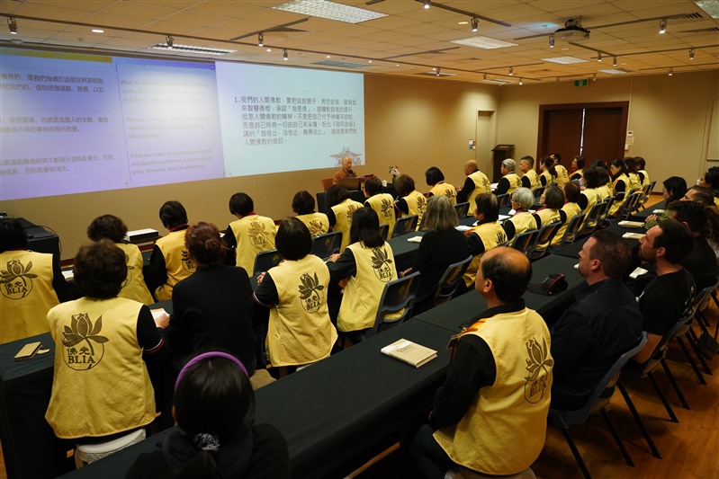 北島協會會長顧榆齡感謝住持慈悲而深入地闡釋「人間佛教」的精髓,雖是第二次講解,內容卻愈聽愈有道理,深刻體會到「人間佛教」不以強迫為手段,而以包容與感化擴展善美因緣。第四分會會長 Eric Chang 體悟只要心中有佛、有大眾,就有前行的力量,立願成為一個能創造價值的人。第三分會會長朱素玉體會到成佛需能量的開發與成長,唯有勇於面對生活,承擔責任,每一天都要讓自己有所覺悟。第三分會督導戰霈綺和佛光人丁淳潔表示在生生不息的生命長河中,要珍惜因緣,精進用功,提升生命的品質,延續法身慧命。