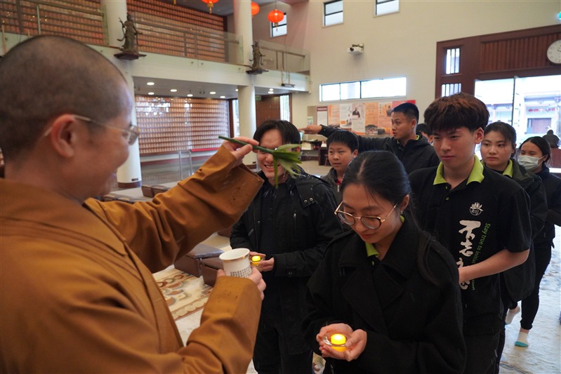 六月份是紐西蘭各高校學子們忙碌備考的時期,為了給考生送上祝福,2025年6月8日,紐西蘭北島佛光青年團特別於北島佛光山大雄寶殿舉辦「考生祈福法會」,監寺如廉法師領眾諷誦《心經》,恭讀佛光山開山祖師星雲大師《為考生祈願文》,為26位青年灑淨獻燈,祈願佛菩薩加持,建設內心堅強的耐力,在考場上表現最佳的實力。佛光青年亦參加「2025第二梯次北島協會佛光人講習會」,聆聽紐西蘭佛光山住持滿信法師的開示,以智慧力開發自己的潛在能力。
