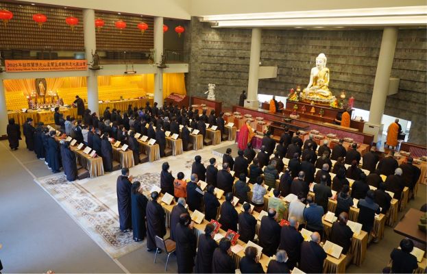 紐西蘭北島佛光山於2025年8月3日啟建一年一度「盂蘭盆孝親報恩地藏法會」, 紐西蘭佛光山住持滿信法師在大雄寶殿主法領眾諷誦《地藏菩薩本願經》,200位大眾虔誠誦經迴向歷代先遠考妣宗親,報答父母的養育之恩,並祈願消災免難闔家平安。
