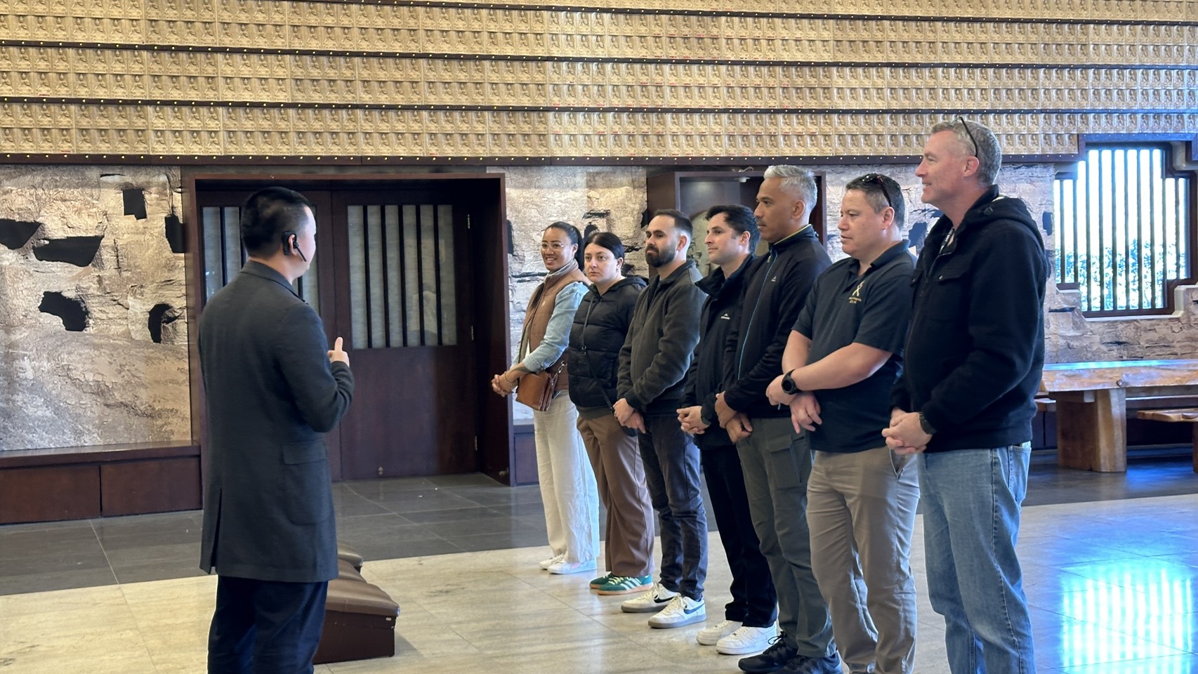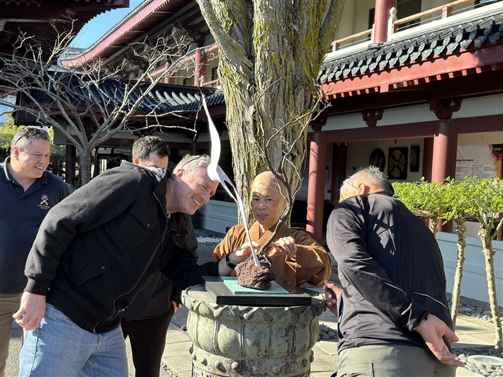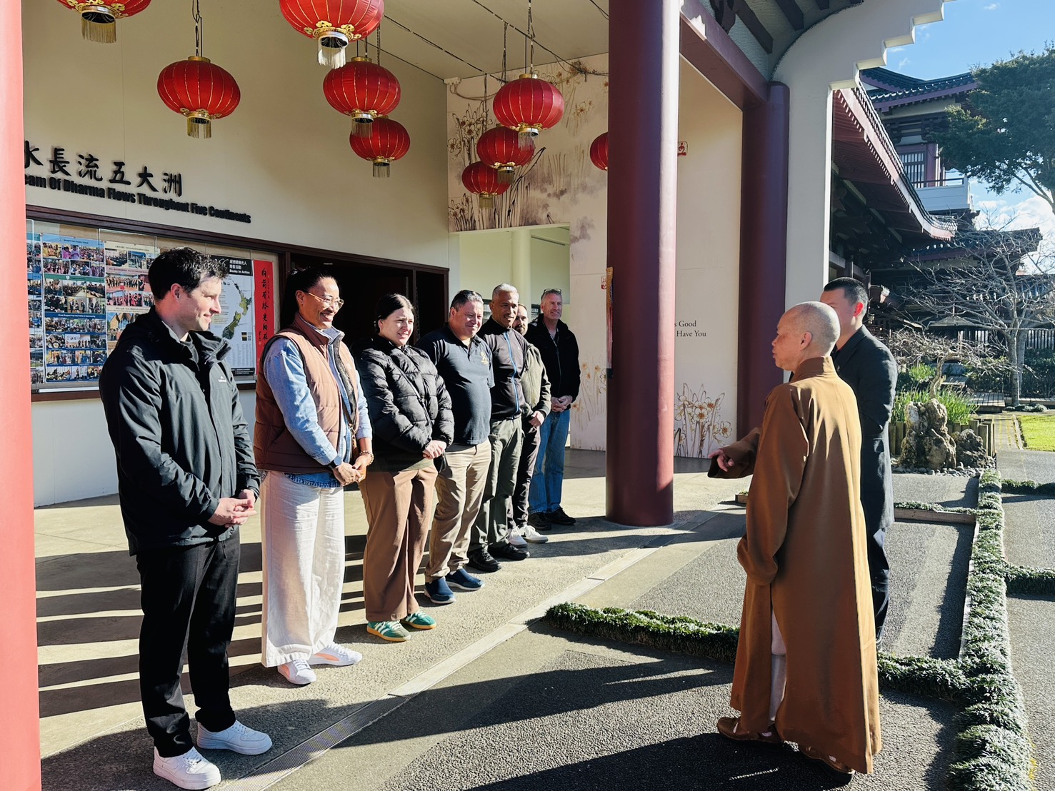 2025年8月22日,紐西蘭國防部 New Zealand Defence Force 陸海空7位軍官在 Freda 軍官的帶領下參訪北島佛光山,紐西蘭佛光山住持滿信法師、北島監寺如廉法師、國際佛光會紐西蘭北島協會副會長容鎮南、Annie Chang督導等共同帶領參觀道場各殿堂及敲響和平鐘。