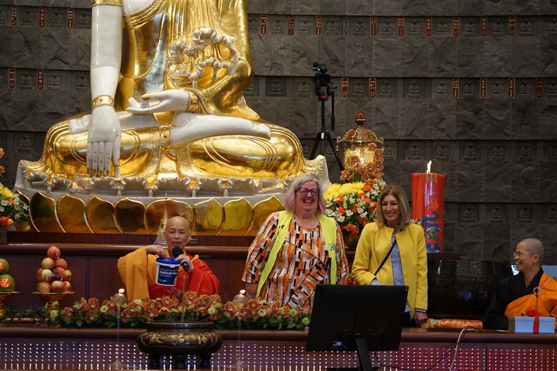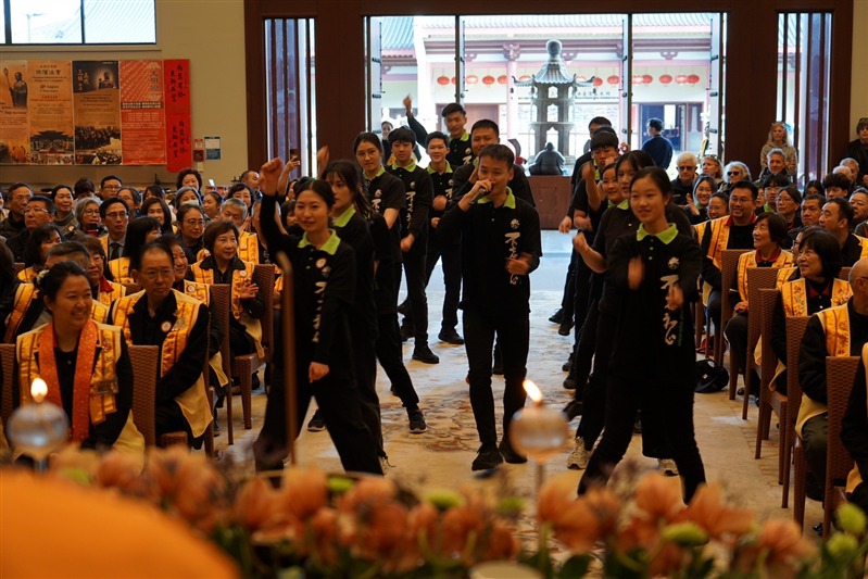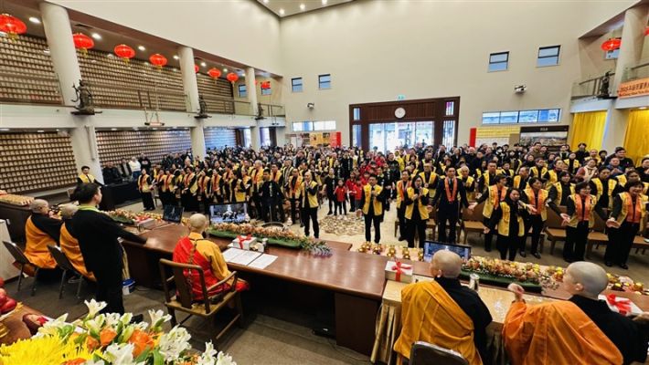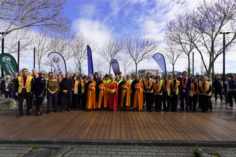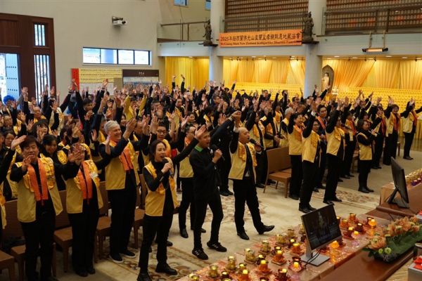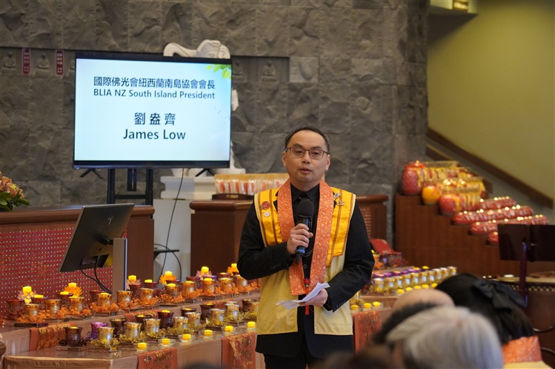 南島協會劉盎齊會長致辭表示,「我們非常幸福在紐西蘭這片人間淨土裡,有佛光山常住作為佛法僧三寶的堅定依靠,讓我們因為承擔各種活動而開發自己的潛能」,在南島佛光山每年透過咖啡巧克力嘉年華、366贈書等行動,實踐星雲大師三好四給的精神,感謝常住法師領眾創造成長的因緣,佛光人滿懷感恩緊緊跟隨,以回報法師們無私奉獻,發願將人間佛教留在紐西蘭。