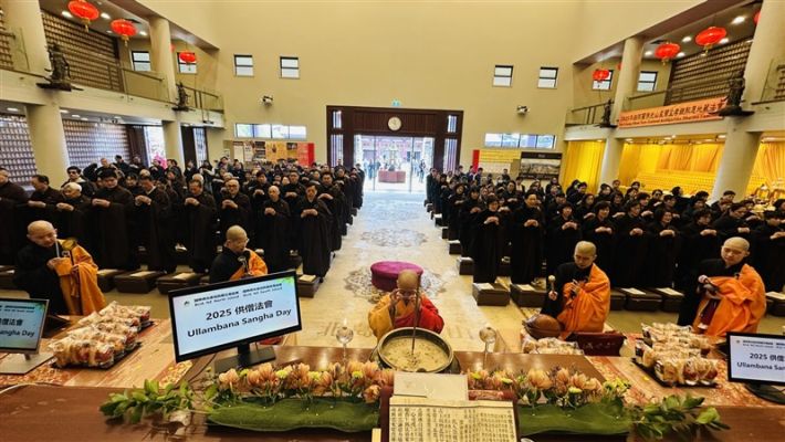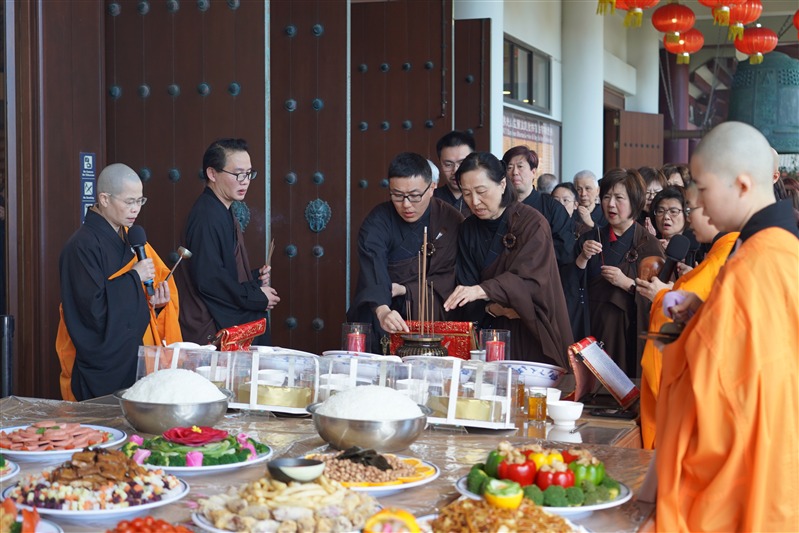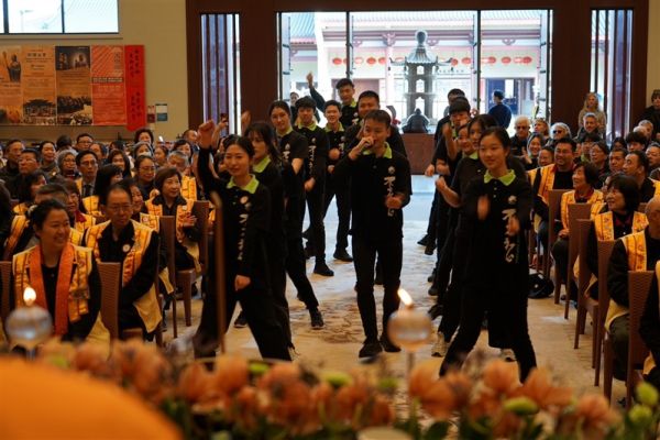 滿信法師開示佛光山開山祖師星雲大師稱農曆七月是「孝道月」,是報恩盡孝的日子。過去佛陀曾指導弟子結夏三個月,在精進修持中不少弟子修行成果非凡,佛陀非常歡喜,故七月也叫做佛歡喜日。《盂蘭盆經》也記載目犍連尊者以供養僧眾的功德迴向七世父母,助其往生善道。感謝今日與會大眾透過演出、獻食等三業的供養來緬懷大師,這份行孝報恩信仰的實踐,必然豐富心靈,祝福大眾煩惱冰消智慧如海。
