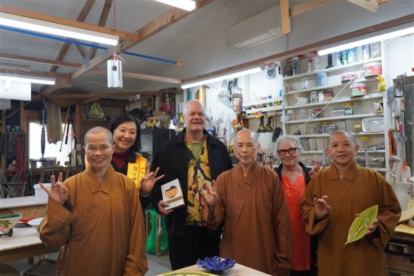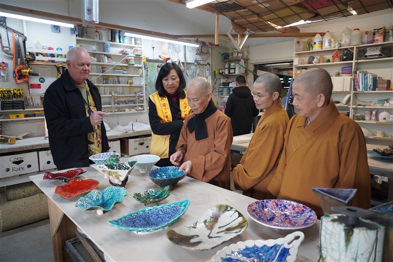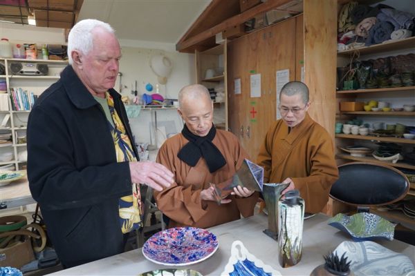 於2025年8月30日佛光緣美術館紐西蘭一館館長滿信法師、一館主任如廉法師及北島協會顧榆齡會長等應紐西蘭藝術家Tom Somerville的盛情邀請,特別前往他在奧克蘭西區Helensville的工作室與農場住家。