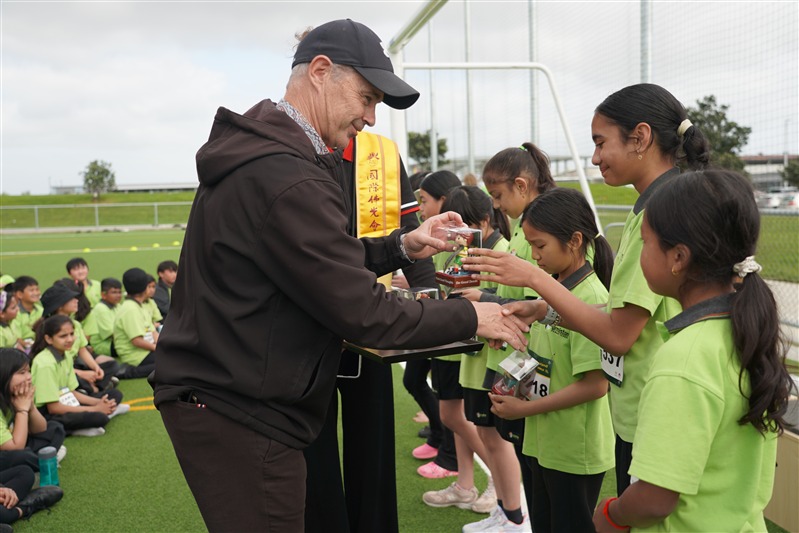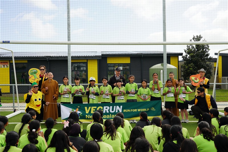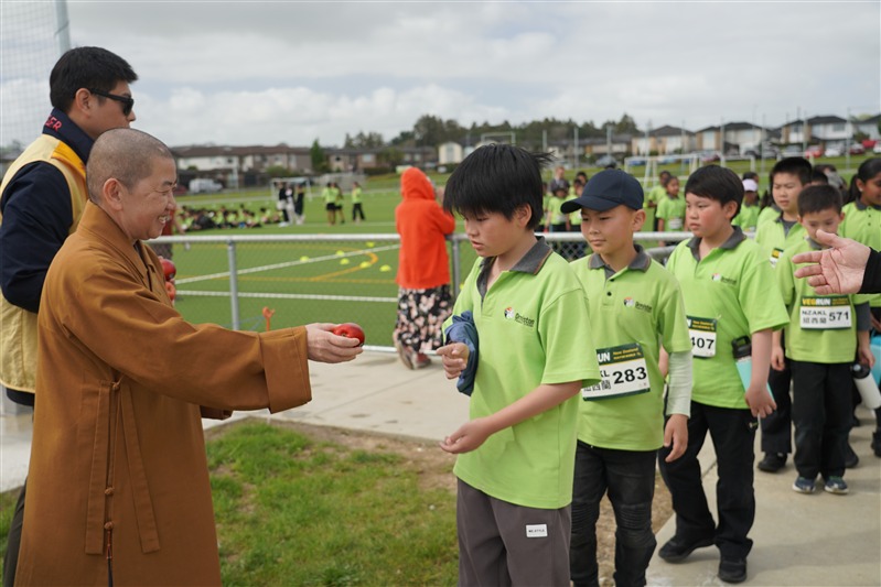 於2025年10月17日,紐西蘭北島佛光山及北島佛光協會前往紐西蘭全國最大的小學Ormiston Primary School,開啟本年度第一場「2025年全球復蔬公益路跑 – 你跑步、我種樹」的活動,以支持紐西蘭Trees That Count的全國植樹組織。校長Heath McNeil親自帶領450位五及六年級的學生積極參與,以每跑1公里北島協會將捐贈1顆樹為目標,好多位學生為能達500顆樹的目標,而再多跑了幾公里集體創下好成績,常住妙禹法師及協會副會長容鎮南等多位佛光人現場協助統領活動。