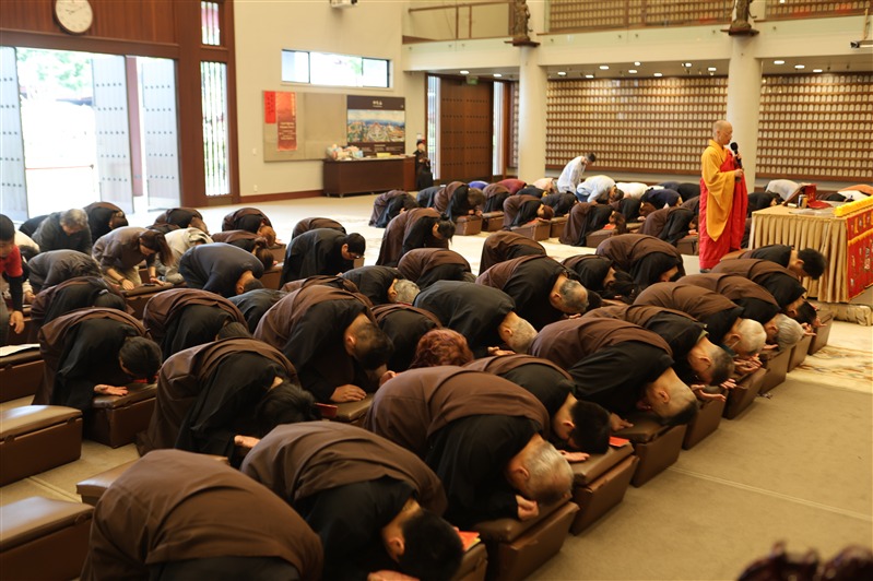 住持讚歎與會大眾都是有福報之人,除了有健全的身體,並且知道要來道場,更一起虔誠禮拜藥師佛誦持藥師經文,因為此份信仰而豐富了自己的生命。住持鼓勵大眾要多親近道場,把握聽聞正法的因緣來培植自己的福德智慧,不辜負這一期生命的價值,讓正確的思想態度不斷注入到自己的八識田中而清淨身口意,祝福大眾身心都會放光,也開啟心中的無限智慧。