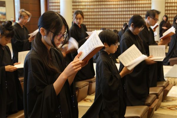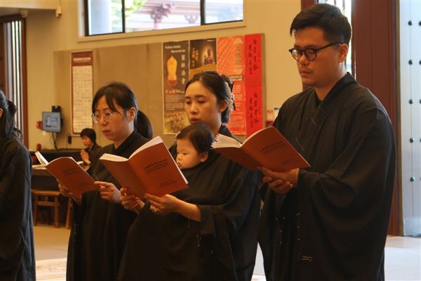 國際佛光會紐西蘭北島協會會長顧榆齡帶領女兒與2位孫子共同受戒,圓滿一家三代一同皈依的殊勝因緣。11歲的孫女孫芷安分享歡喜成為佛陀的學生,要學習與佛陀老師一樣有智慧。北島協會秘書王霂陽也攜帶母親及5個月大的女兒來參加皈依典禮,讚嘆攝受於佛教儀軌的莊嚴殊勝,流程井然有序,讓人心生敬仰。