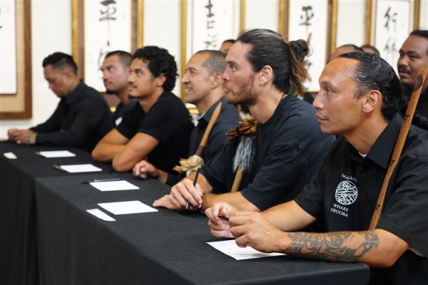 紐西蘭毛利族第一武士暨傳統守護人Tamiaho Herangi-Searancke分別於2025年12 月 2 日及12 月 6 日兩度參訪紐西蘭北島佛光山,除了贈送珍寶綠玉石,並以傳統莊嚴的毛利戰舞Haka禮敬常住三寶及佛光山開山祖師星雲大師。這是一場跨種族、跨宗教、跨文化,最高等級的心靈獻禮,住持滿信法師、監寺如廉法師、北島協會會長顧榆齡、督導長余林濤等隆重接待。