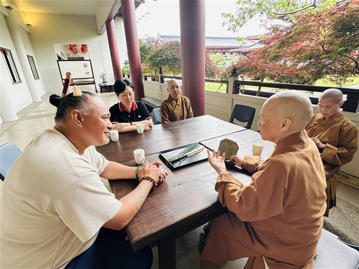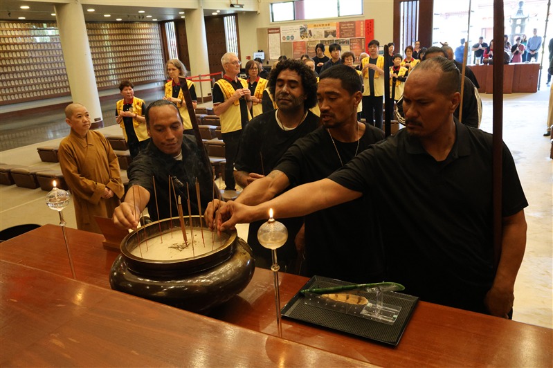 首次參訪時Tamiaho Herangi-Searancke以至高禮儀向住持滿信法師獻上承自祖母,象徵眾心和合的綠玉石Tatau Pounamu 「和平之門」。他表示很欣慰終於將這塊玉石帶「回家」, 並以毛利語祈願這塊承接先賢心靈的珍寶, 在眾人心中綻放光明與智慧。