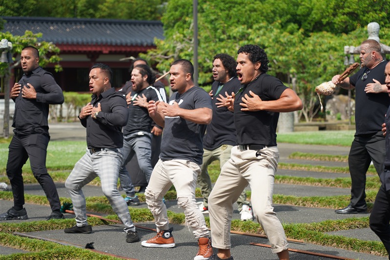 紐西蘭毛利族第一武士暨傳統守護人Tamiaho Herangi-Searancke分別於2025年12 月 2 日及12 月 6 日兩度參訪紐西蘭北島佛光山,除了贈送珍寶綠玉石,並以傳統莊嚴的毛利戰舞Haka禮敬常住三寶及佛光山開山祖師星雲大師。這是一場跨種族、跨宗教、跨文化,最高等級的心靈獻禮,住持滿信法師、監寺如廉法師、北島協會會長顧榆齡、督導長余林濤等隆重接待。