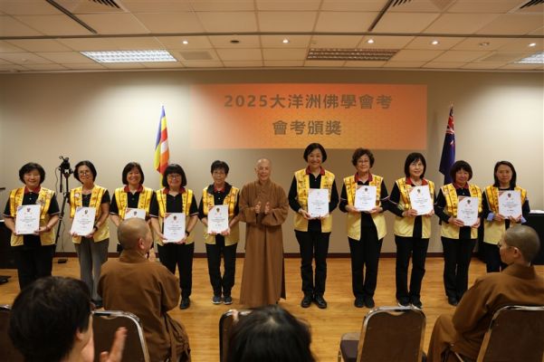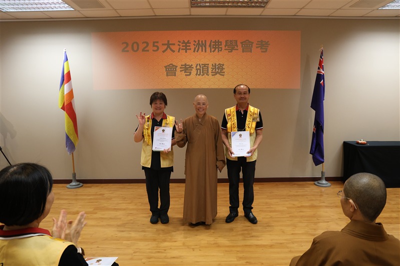 顧榆齡會長代表佛光人感謝常住法師帶領大眾,積極推動人間佛教各項活動,把溫暖與安定帶給社區。其中紐西蘭毛利第一武士暨傳統守護人感應毛利祖靈啟示,特別尋訪到北島佛光山敬獻珍寶玉石,並帶領14位毛利武士以莊嚴戰舞禮敬三寶及佛光山開山祖師星雲大師,譜寫人間佛教本土化的重要篇章。顧會長也分享北島佛光山獲評紐西蘭園藝信託組織 New Zealand Garden Trust四星園林,被評為 「具重要意義的庭園 Garden of Significance」,表示佛光山不僅是素雅的禪園,更是推動文化交流、心靈教育、藝術美學與社會關懷的重要平台,感謝住持長年親自帶領團隊修剪照顧園林,獲得獎項可謂實至名歸,能夠在清淨莊嚴的道場共同學習與成長,實為大眾的福報。