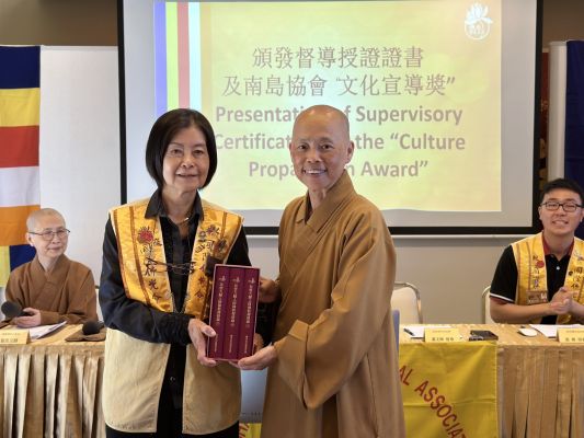 會中介紹六位新會員,宣布南島協會第一分會新任會長陳小云、副分會長端木琳,及第三分會新任會長Deirdre Johns。住持滿信法師頒發佛學會考成績優異獎勵、為蕭文輝督導授予督導證書,並頒發南島協會「文化宣導獎」,同時將《星雲大師人間佛教傳燈錄》套書贈送給蕭督導、劉會長與郭督導。佛光青年與佛光人也獻上舞蹈《佛在汝心》,為活動增添溫馨與感動。