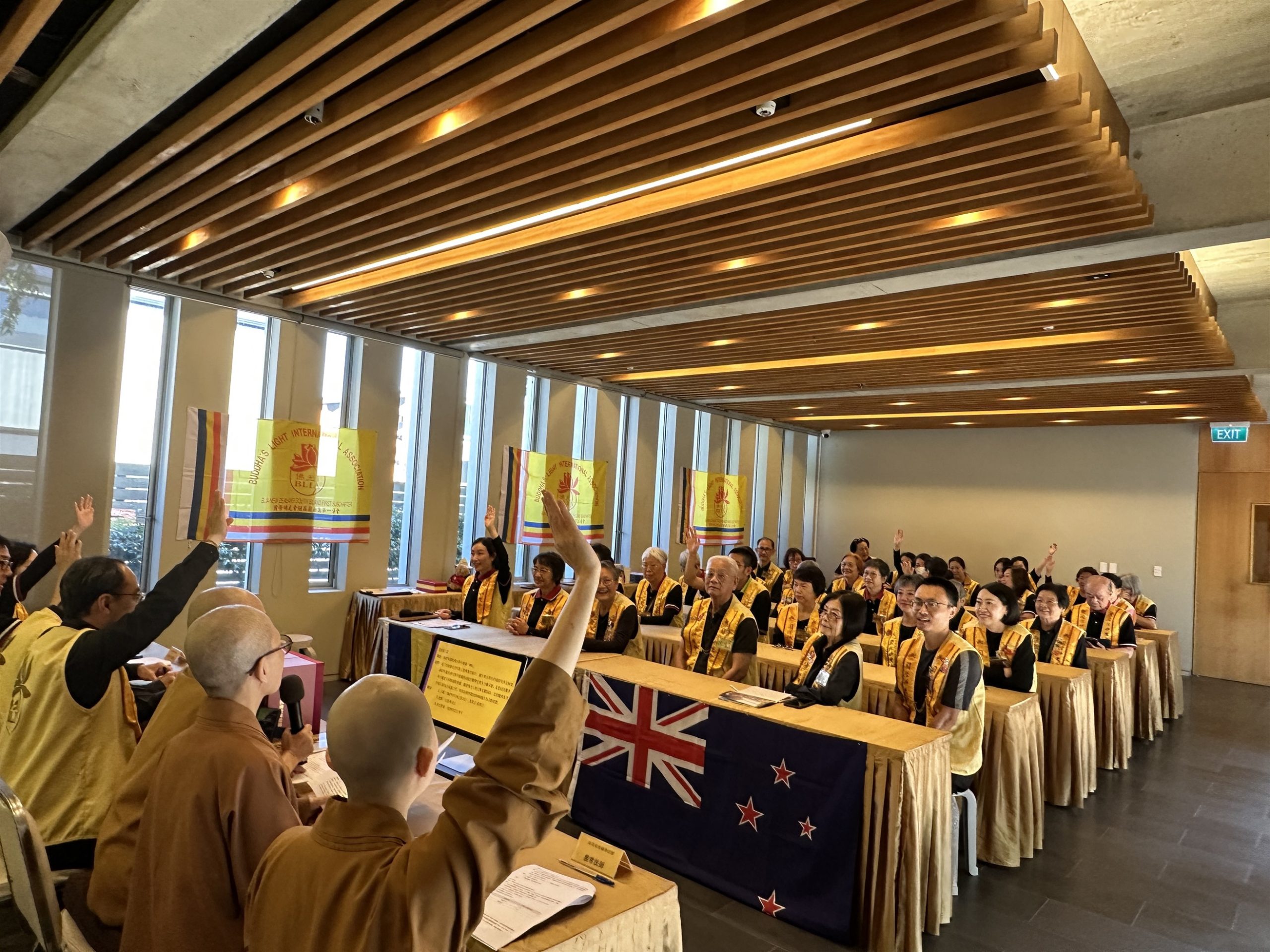 國際佛光會紐西蘭南島協會於12月13日舉行「2025年會員代表大會暨冬至聯誼」,會議由協會會長劉盎齊主持、住持滿信法師、監寺覺西法師、蕭文輝督導、張棟副會長、曹倩副會長及理事近40位佛光人出席。