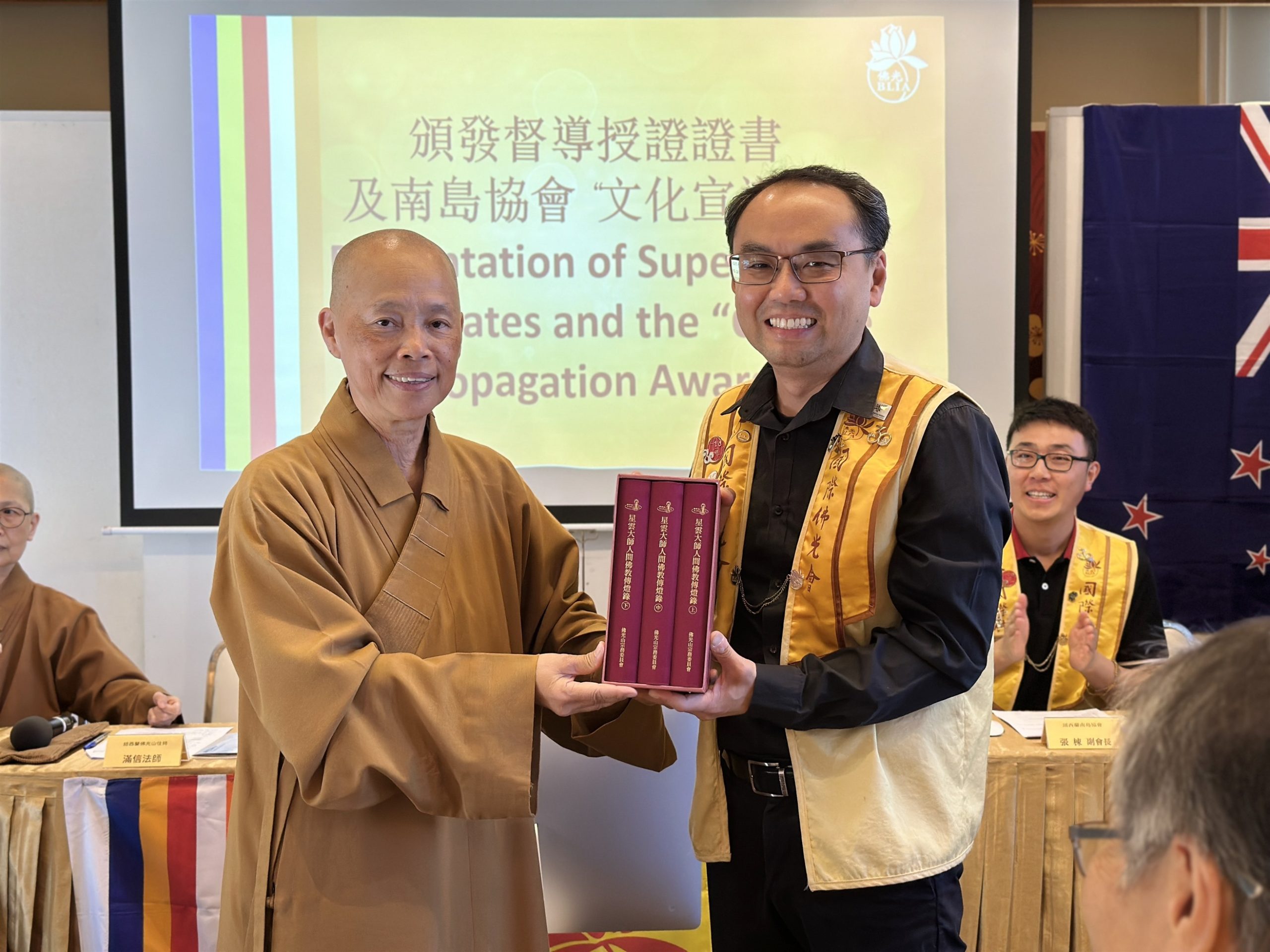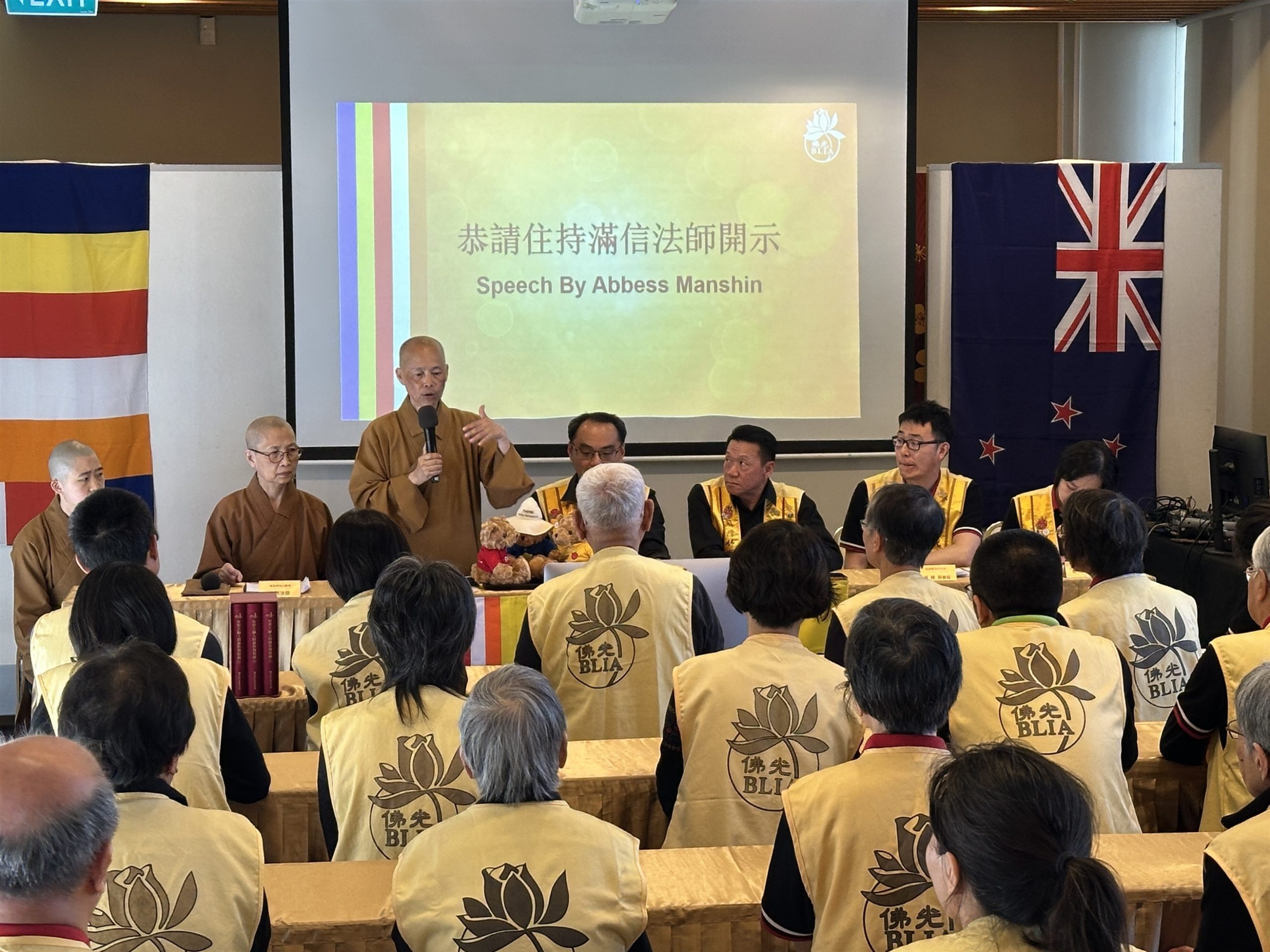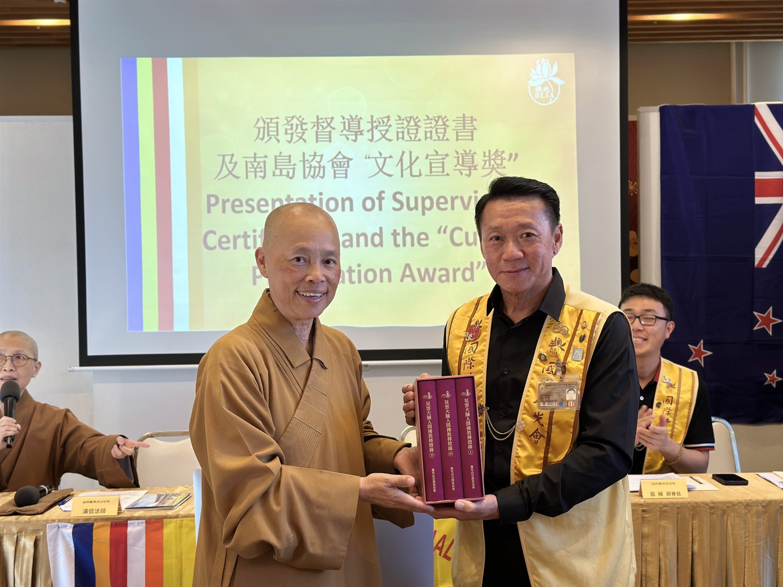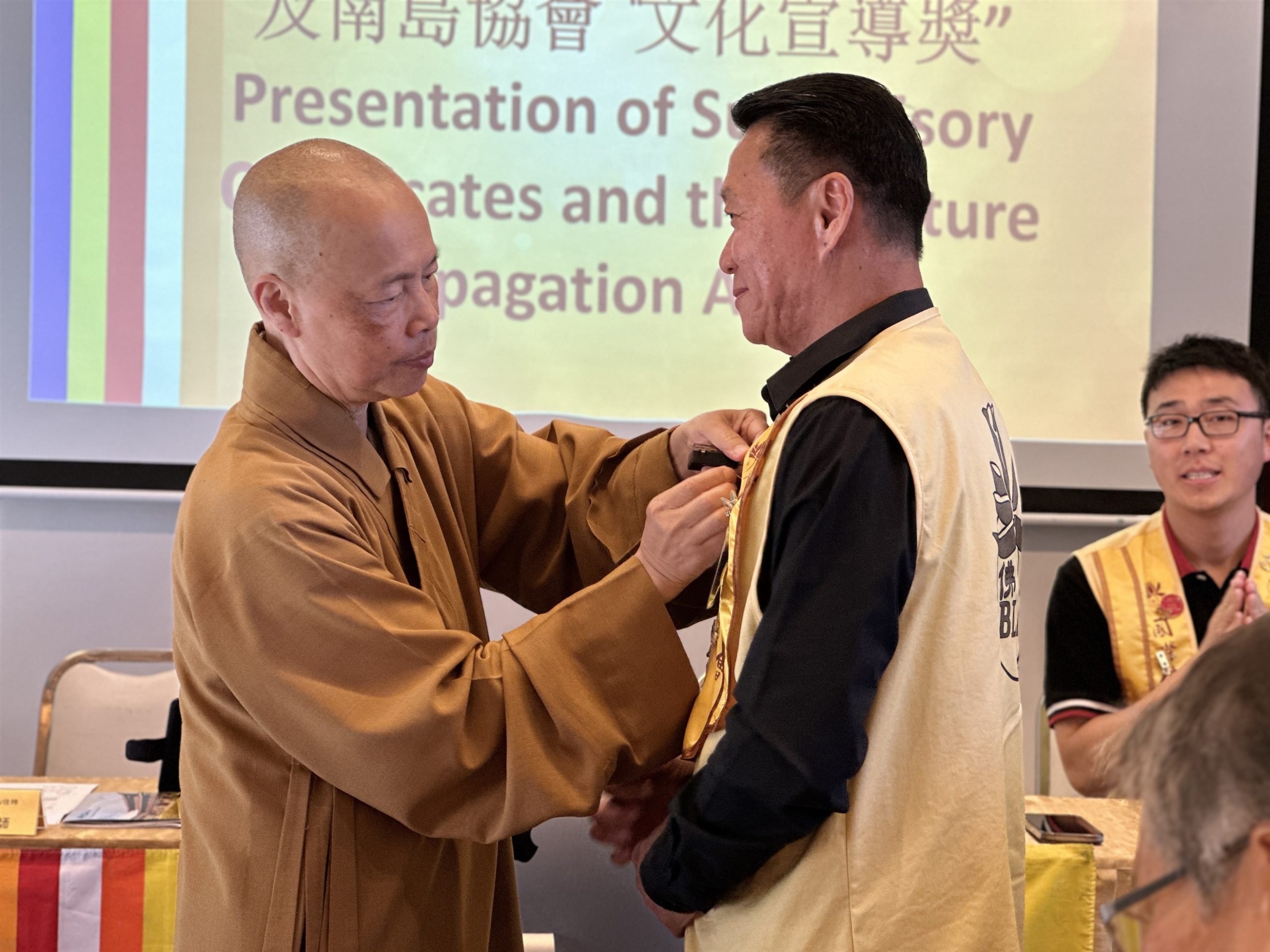 會中介紹六位新會員,宣布南島協會第一分會新任會長陳小云、副分會長端木琳,及第三分會新任會長Deirdre Johns。住持滿信法師頒發佛學會考成績優異獎勵、為蕭文輝督導授予督導證書,並頒發南島協會「文化宣導獎」,同時將《星雲大師人間佛教傳燈錄》套書贈送給蕭督導、劉會長與郭督導。佛光青年與佛光人也獻上舞蹈《佛在汝心》,為活動增添溫馨與感動。